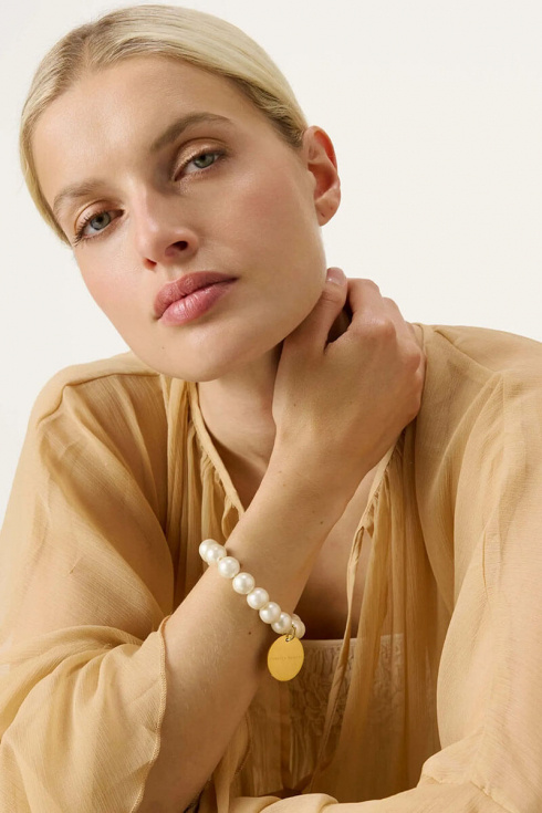 Pärlorna ligger elegant mot handleden och blir ett perfekt komplement till din look.
