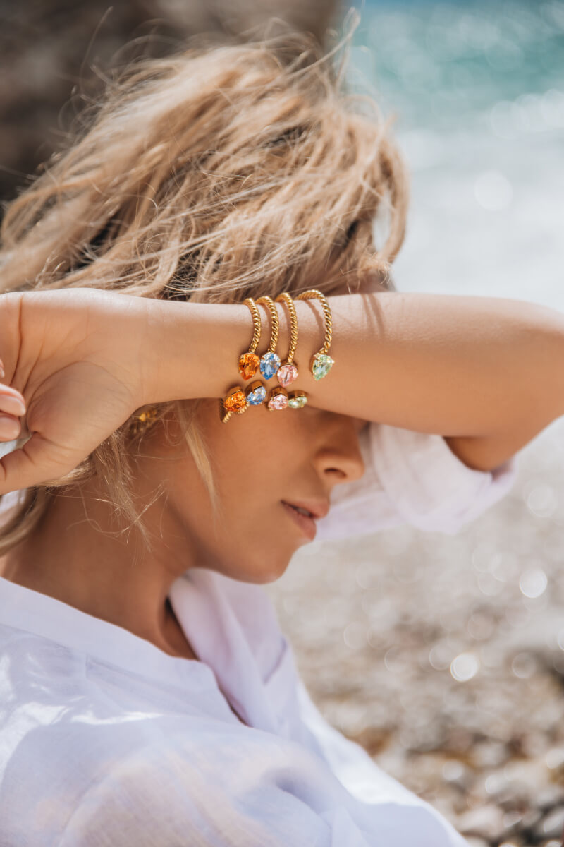 Armband som är justerbart med Swarovski kristaller och 18K guldöverdrag från Caroline Svedbom.- Storlek: Justerbar från 55-70 mm