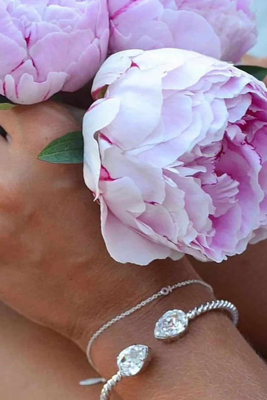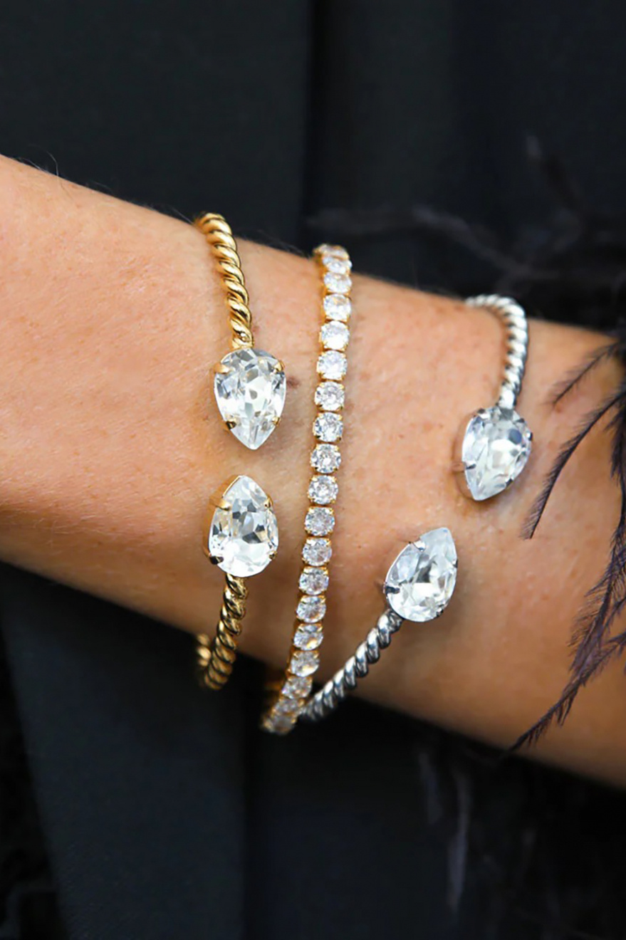 Justerbart armband gjort i mässing med Rhodium plätering och Swarovski kristall från Caroline Svedbom.100% Nickelfri