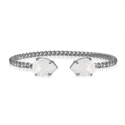 Mini Drop Bracelet, Rhodium & White Opal