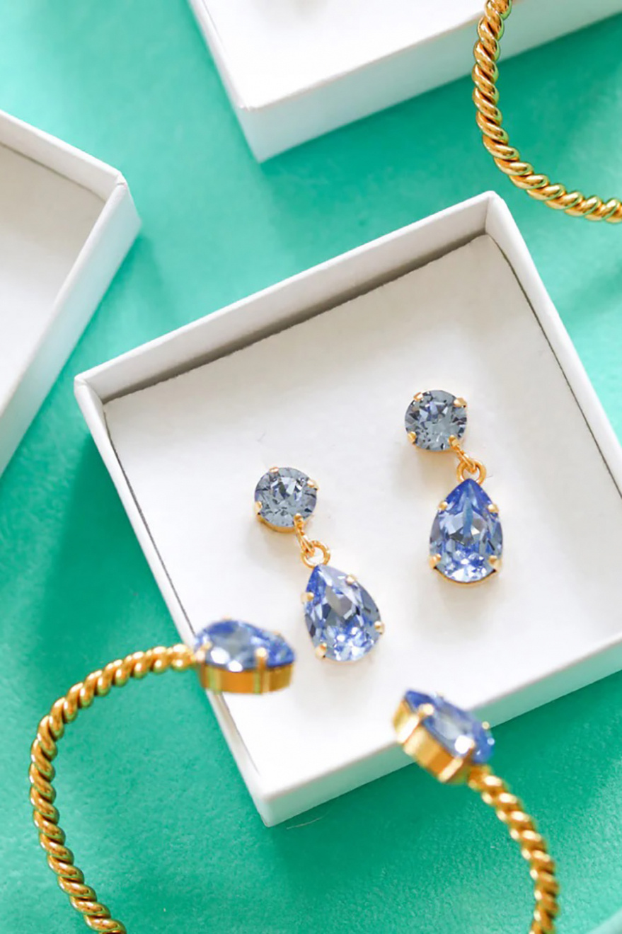 Örhängen gjorda i mässing med 18K guldöverdrag och Swarovski kristaller från Caroline Svedbom.- Storlek: 27x10 mm