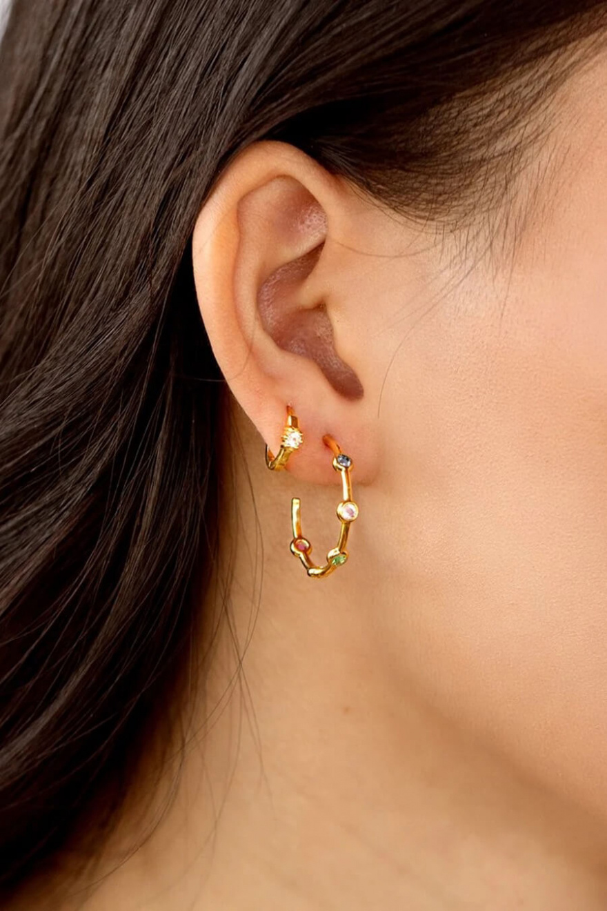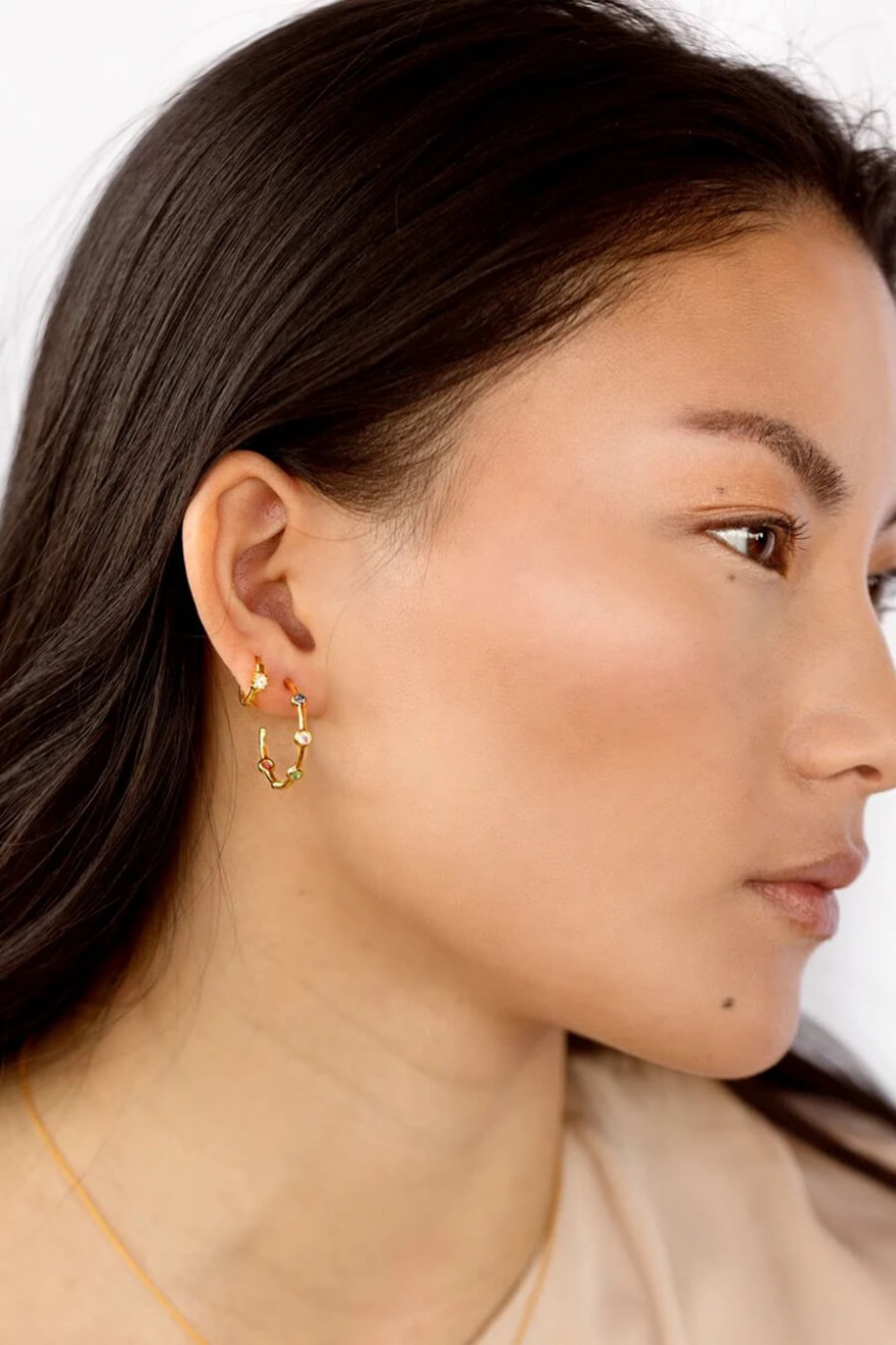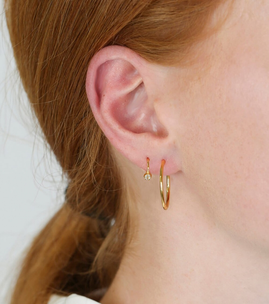 Små örhängen i sterling silver med 18K guldöverdrag och en liten kristall från Syster P.- Berlockens storlek: 3mm
