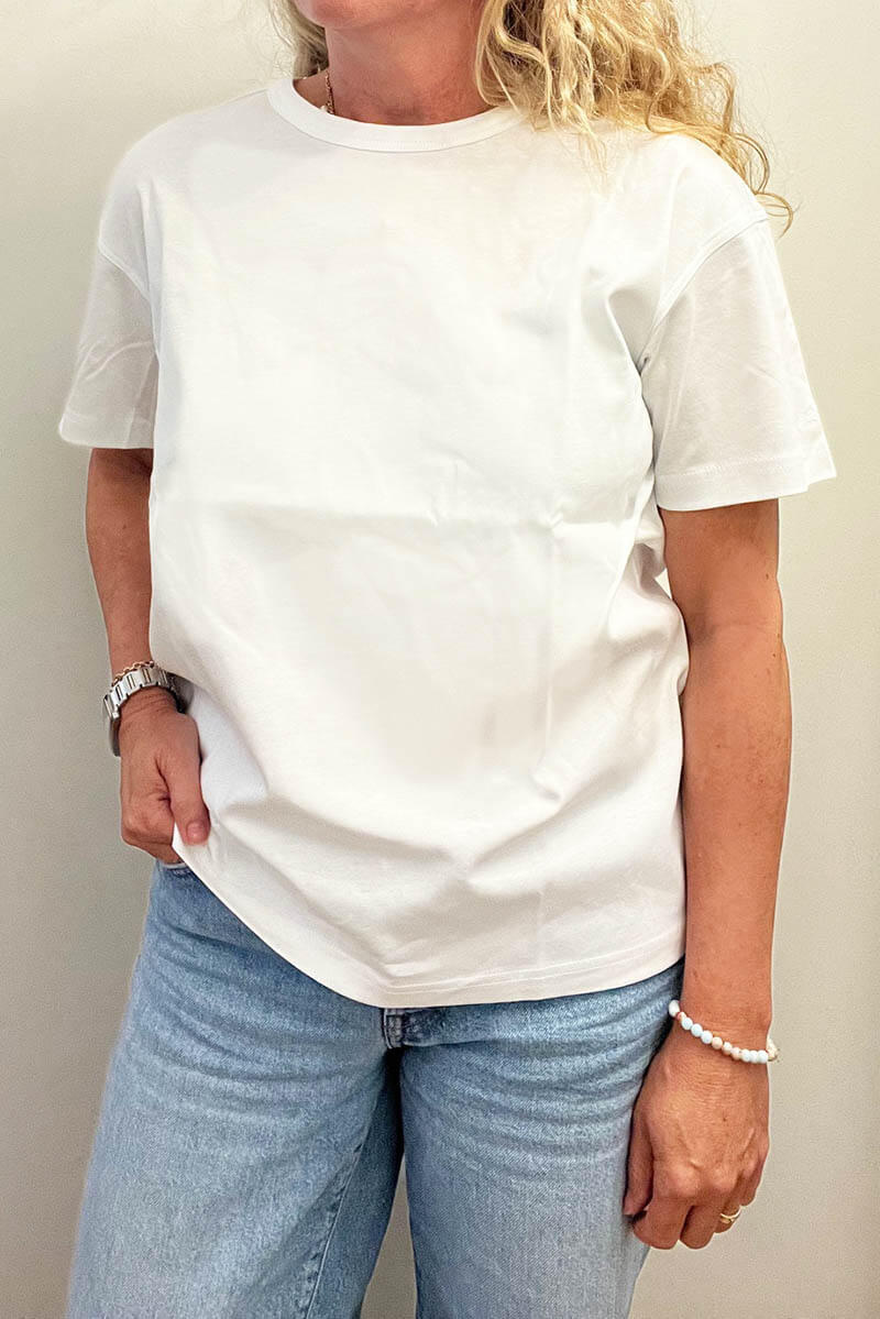 En klassisk t-shirt är alltid en bra idé!Den här har den perfekta passformen och är designad i en rak (lite boxig) siluett och tillverkad i mjuk bomull, vilket ger en len känsla. Den här t-shirten är ett måste i basgarderoben och passar till nästan allt.