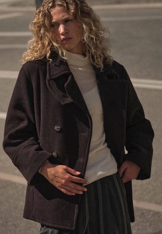 Stilig ulljacka i ett sofistikerat melerat mönster som ger en tidlös och raffinerad look. Den klassiska knäppningen och de praktiska fickorna förenar elegans med funktionalitet. Bär den över en stickad tröja för en mysig känsla eller styla med skräddarsydda byxor för en polerad men avslappnad outfit.
