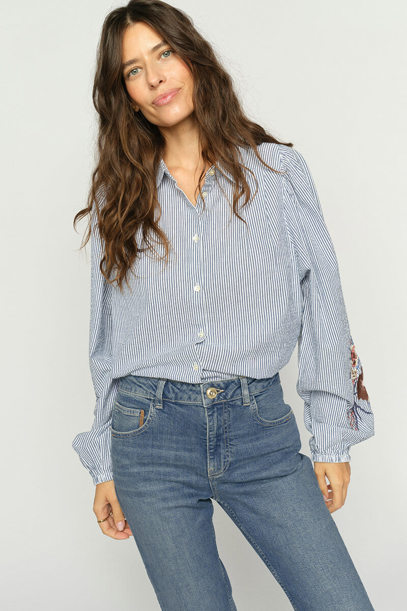 Tillverkad i mjuk och luftig bomull, med vackra broderade detaljer på ärmarna som ger en exklusiv och stilfull känsla. Den mandarin-inspirerade kragen tillsammans med knäppning framtill skapar en tidlös silhuett som passar lika bra till vardag som till mer uppklädda tillfällen.