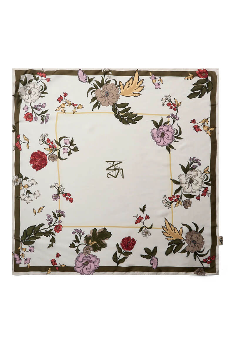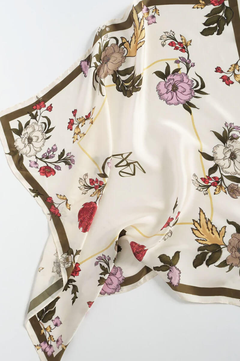 Denna vackra scarf är designad i en lätt och mjuk kvalitet med elegant blommönster för ett feminint och raffinerat uttryck. Det konstnärliga mönstret gör den till en stilfull accessoar som lyfter varje outfit. Bär den runt halsen, i håret eller knuten på väskan för en personlig touch.100% Viskos