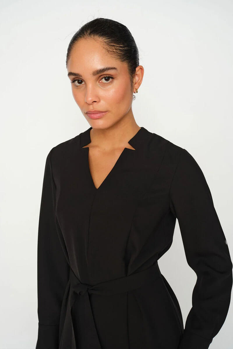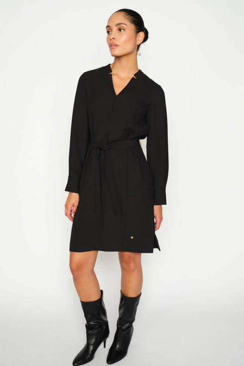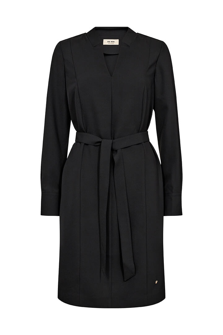 En klassiker, enkla svarta klänningen från Mos Mosh!Denna har v-hals som blir smickrande, slizar i sidan och ett band du kan knyta om du vill i midjan.