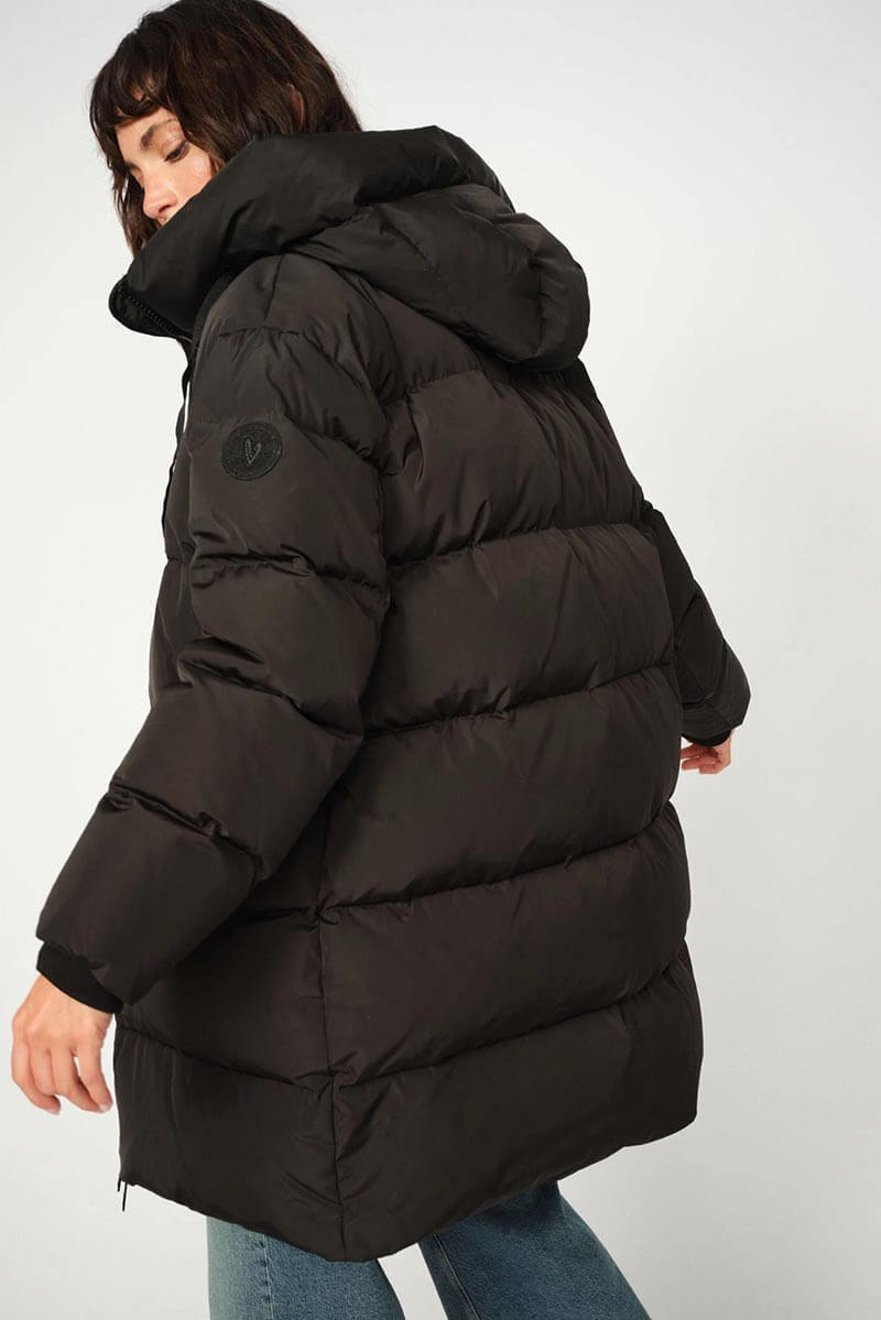 Denna dunjacka-kappa är den perfekta kombinationen av funktion och mode. Med en något avslappnad passform, kraftig dragkedja och hög krage skyddar den mot kylan samtidigt som den känns modern och enkel att bära. Fylld med ultralätt dun för maximal värme utan att bli tung. Den kortare längden för en dunkappa gör den mångsidig – lika snygg till klänning som till jeans.