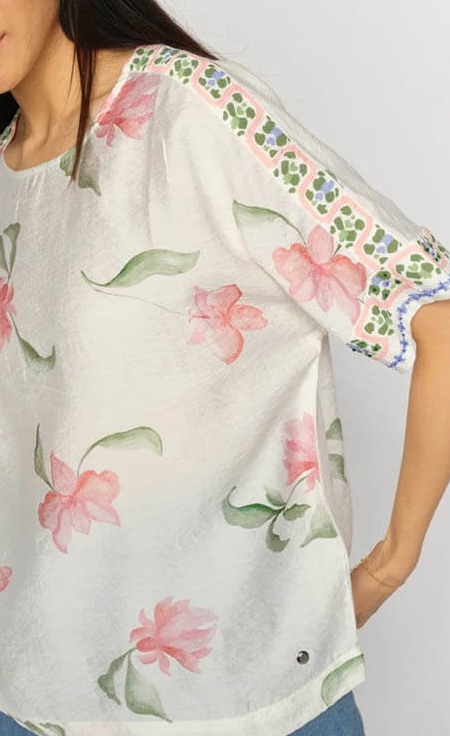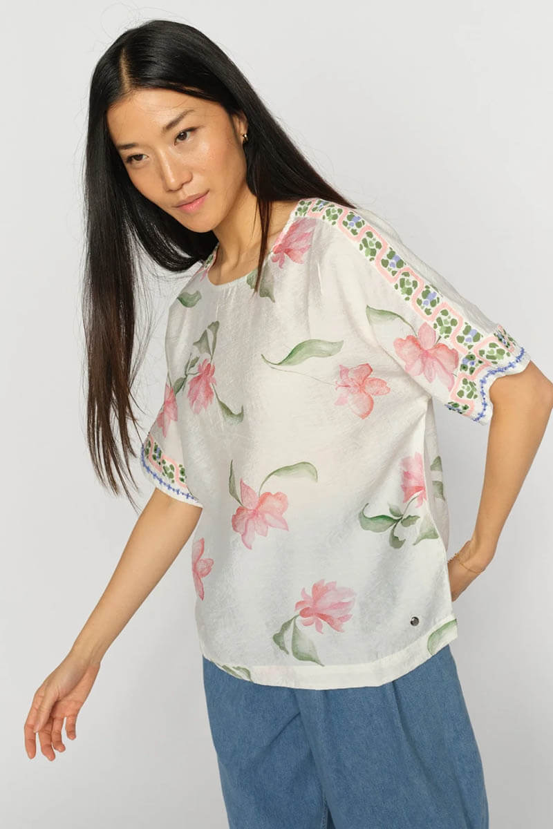 MMPalma Big Orchid Blouse, Ecru