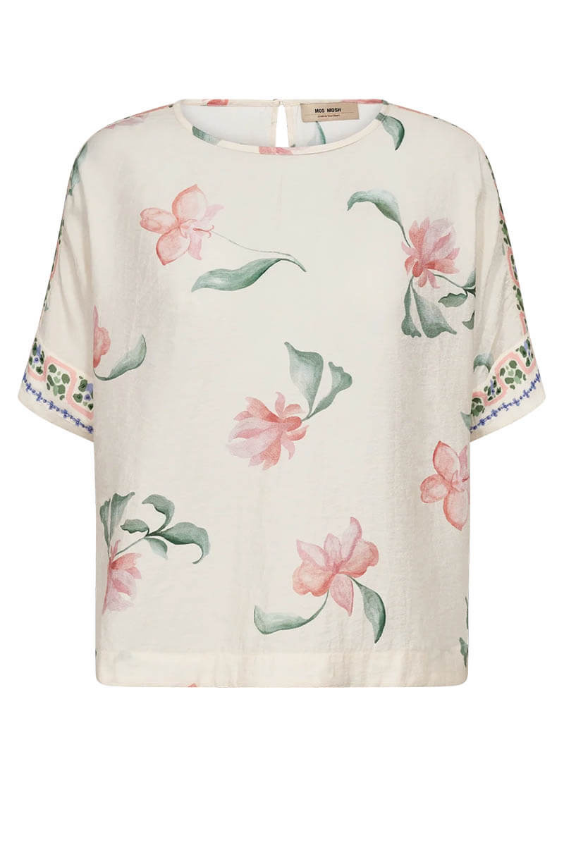 En fin blus med feminin och sofistikerad känsla.Designad i regular fit med mjuk rund hals och korta ärmar, dekorerad med ett vackert blommönster som tillför en delikat touch. Perfekt till kjol eller jeans för en enkel och elegant look.