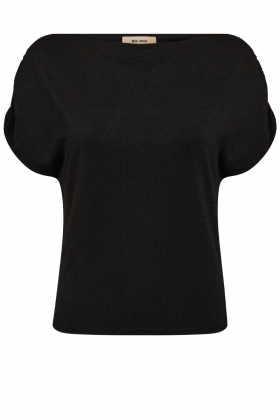 Topp i mjuk, stretchig viskosblandning med metalliska fibrer som ger en diskret glittrande yta. Figurnära passform som följer kroppen utan att kännas åtsittande.