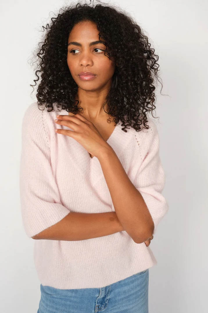 MMTaci ¾ V-neck Knit, Ballet slipper
