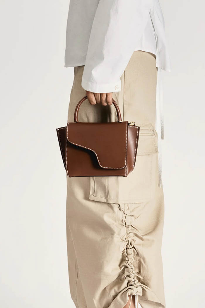 Montalcino Mini Handbag, Cannella & Contrast Stitch