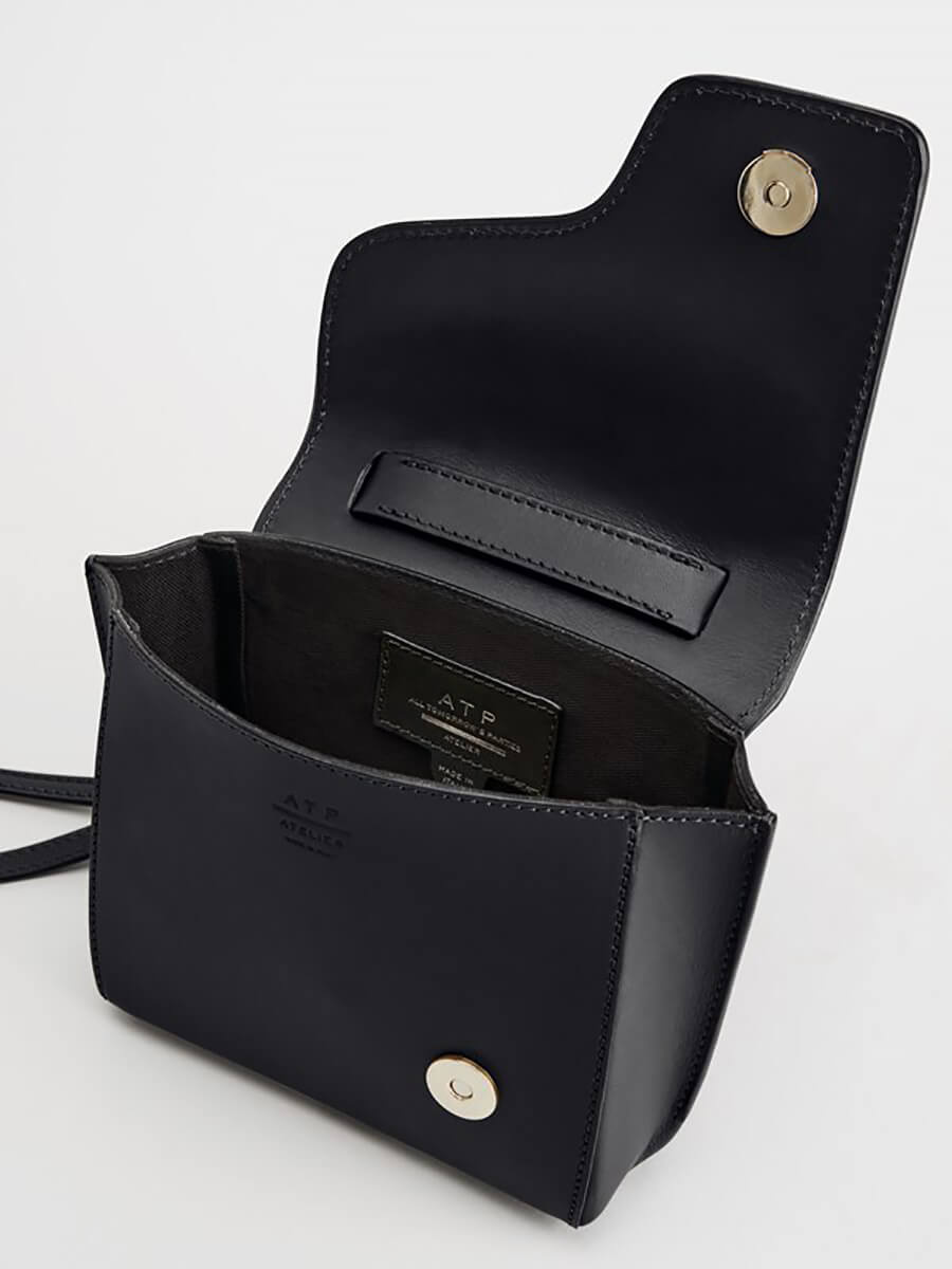 Liten väska i vegetabiliskt garvat vacchettaläder med avtagbar axelrem och stängs med en magnet från ATP Atelier.Höjd: 11 cm Bredd: 18 cm Djup: 6 cm