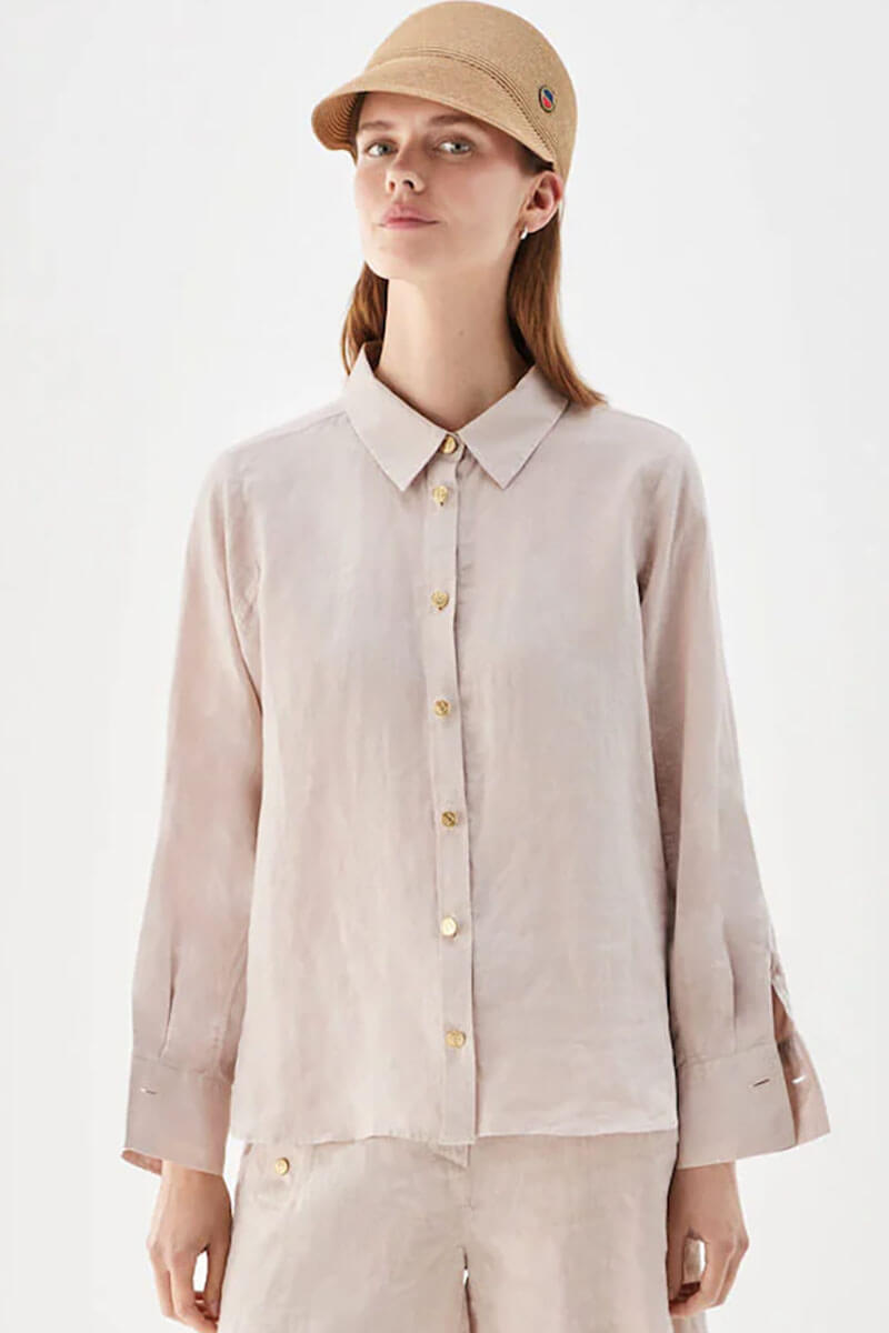Nenne långärmad linneskjorta från Busnel är tillverkad i mjukt och luftigt 100 % linne, ett perfekt val för vår och sommar.