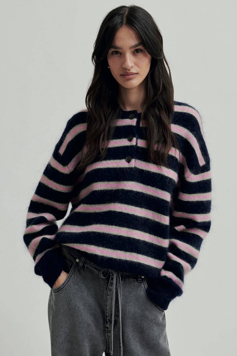 Randig stickad tröja från Second Female – en riktig höstfavorit!Stickad i en mjuk och lyxig mohair-ullblandning som känns fantastisk mot huden.