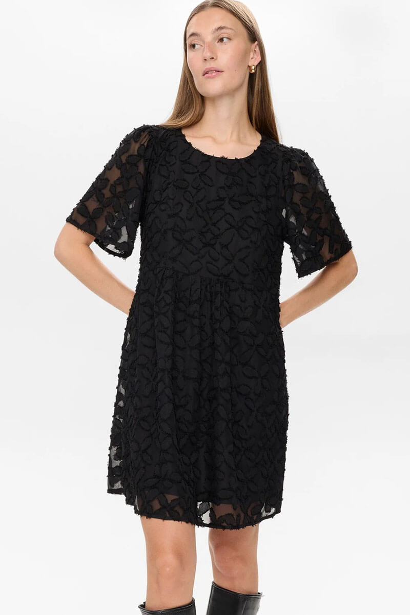 När du behöver den perfekta svarta klänningen är denna ett självklart val. Klänningen har en klassisk rund hals och kort ärm, är helfodrad och har praktiska fickor i sidorna.