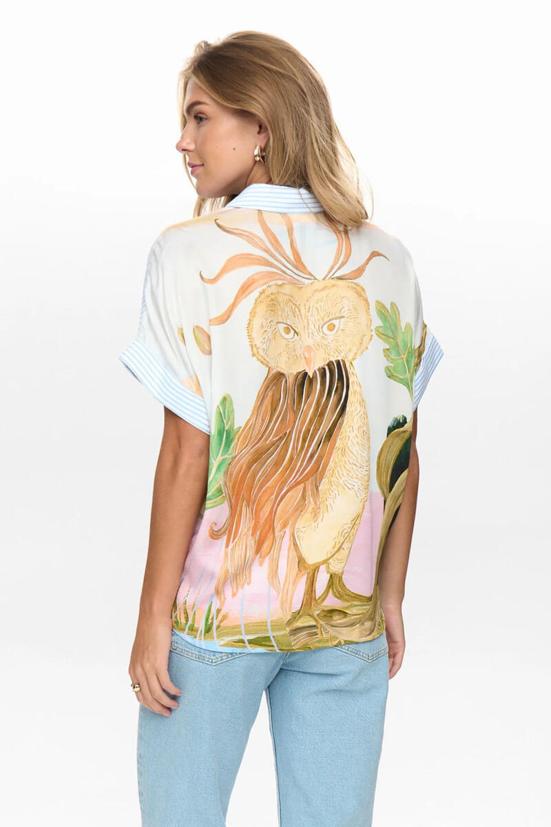 Ge din garderob en unik touch med denna stilrena blus från Nümph, med ett av deras signaturtryck på ryggen. Den avslappnade, lösa passformen och de korta ärmarna ger både komfort och en enkel, chic stil. Perfekt för varma dagar och lätt att matcha med sommarjeans eller kjol.