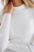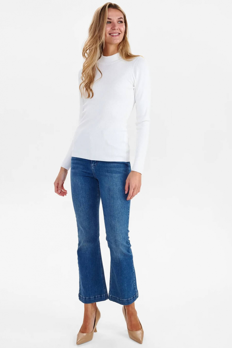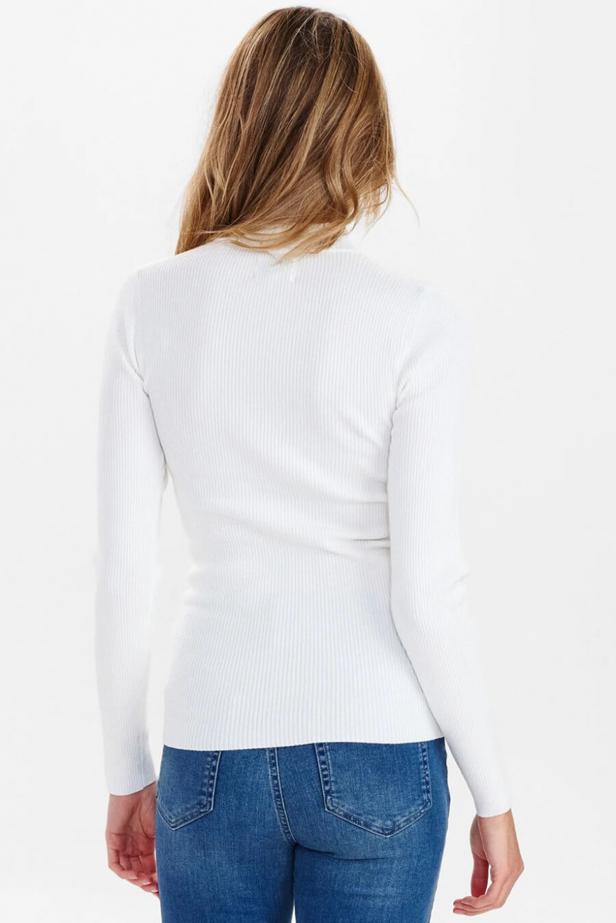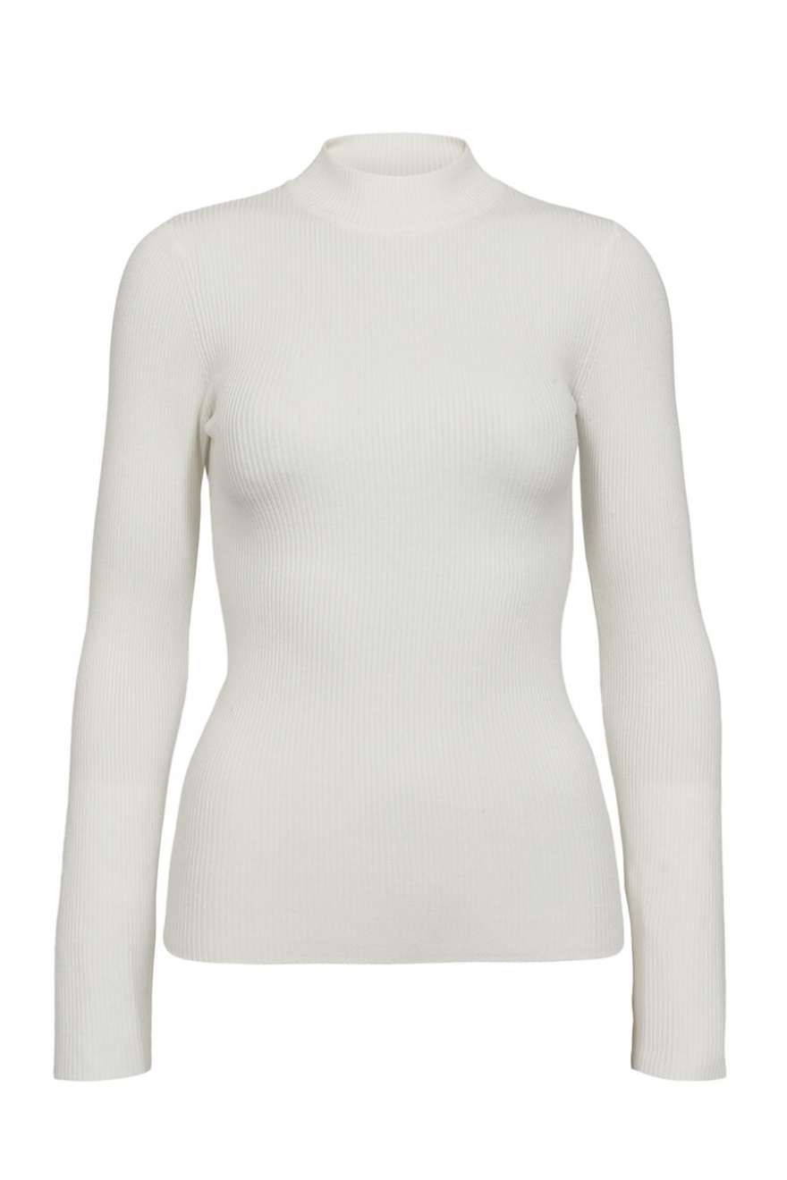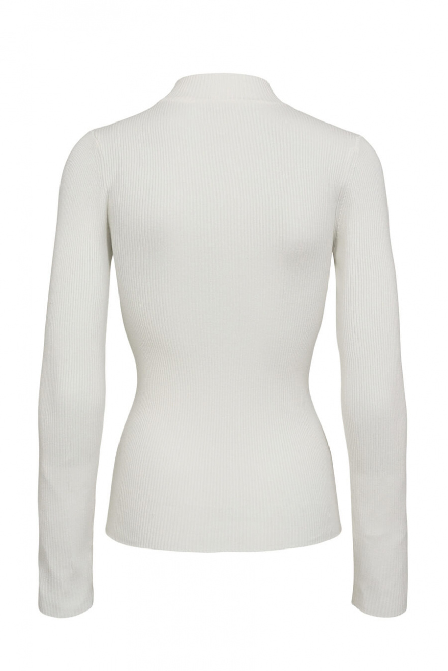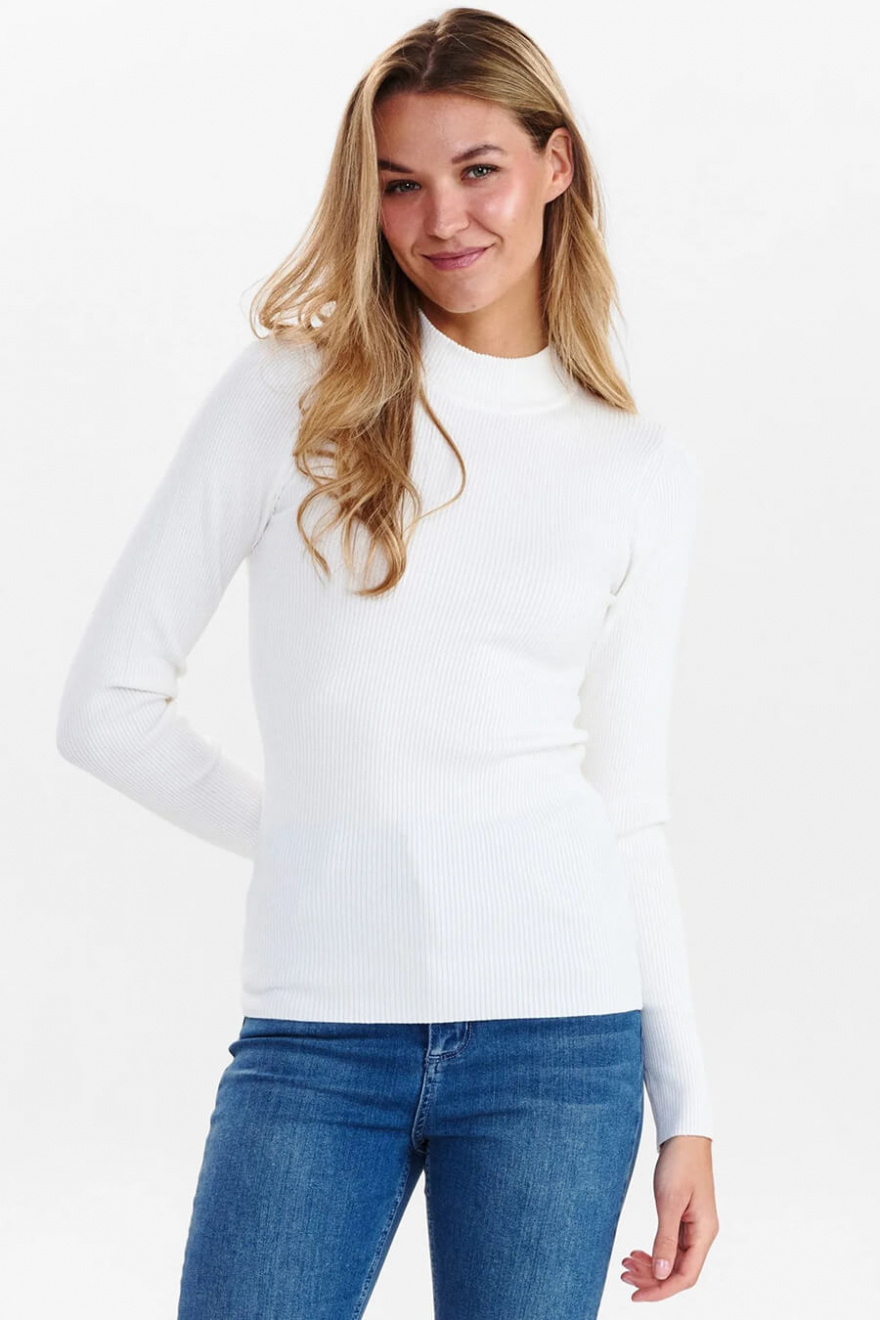 En vit ribbad topp med kort polokrage – definitionen av minimalism med maximal effekt. Den smala passformen skapar en elegant siluett, perfekt för lager-på-lager eller som statement-plagg. Ett tidlöst val som lyfter din garderob direkt!Ribbstickad topp i en mjuk viskosblandning med lång ärm, smal passform och kort polokrage från Nümph.
