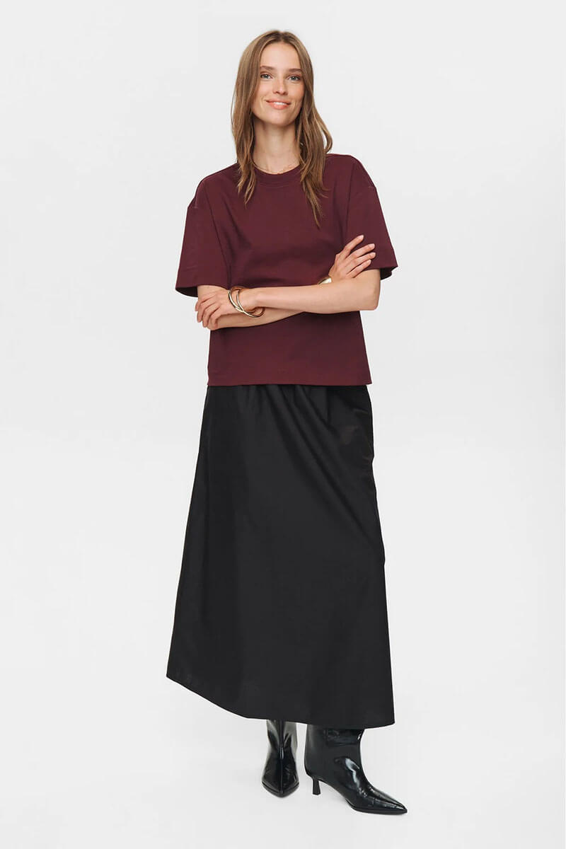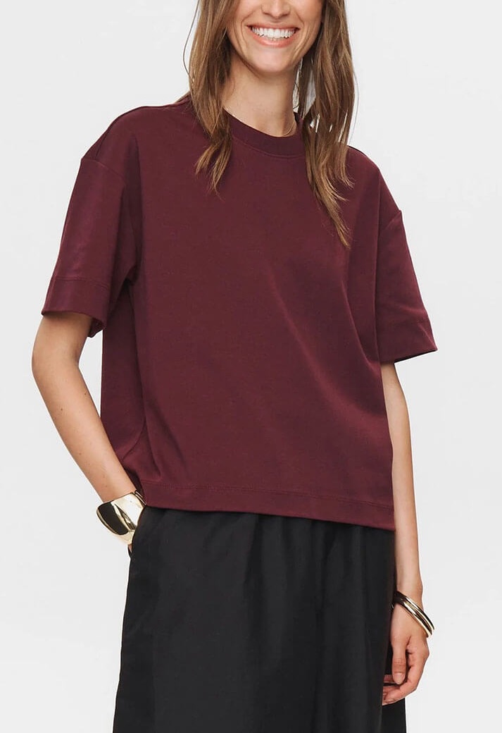 En snygg t-shirt med lite längre ärm och bredare avslut i halsringning.Snygg till både jeansen som till en kjol. Lite stadigare kvalité och i ekologisk bomull.