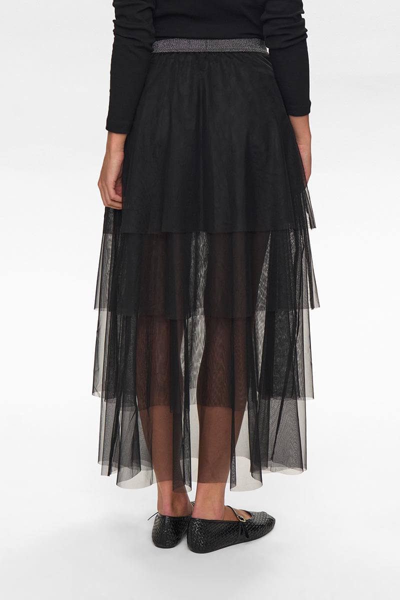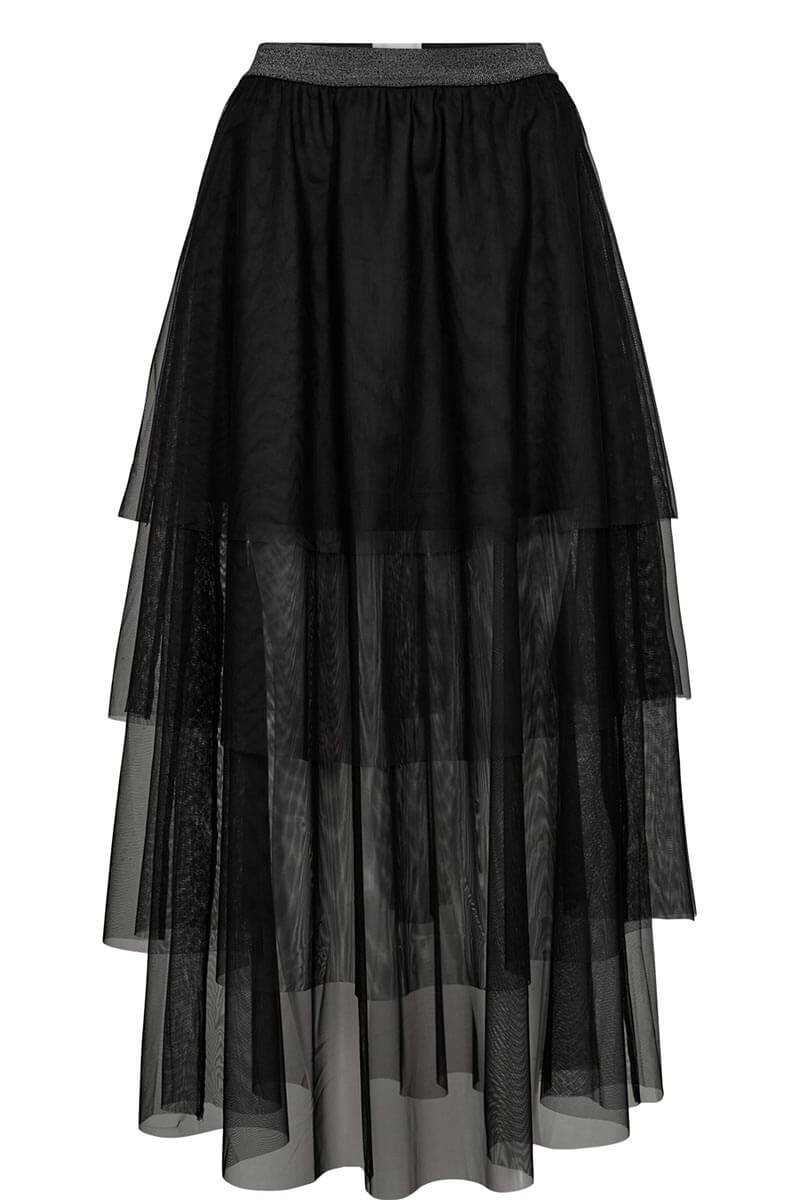 En lekfull kjol du sätter ihop med stickat för en cool middagslook eller festtopp för finare tillfällen.Kjol i flera lager från Danska Nümph med ett foder första delen så du känner dig klädd. För en ännu mer klädd look sätt svarta strumpbyxor till denna look.