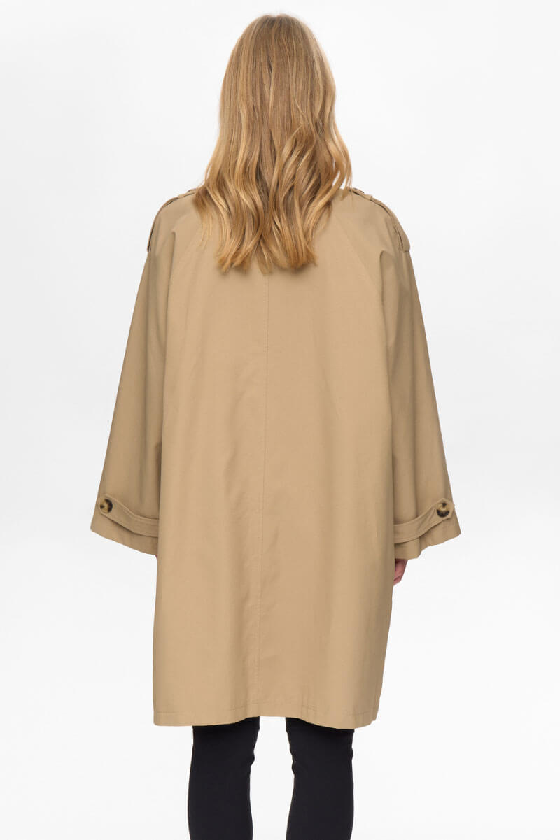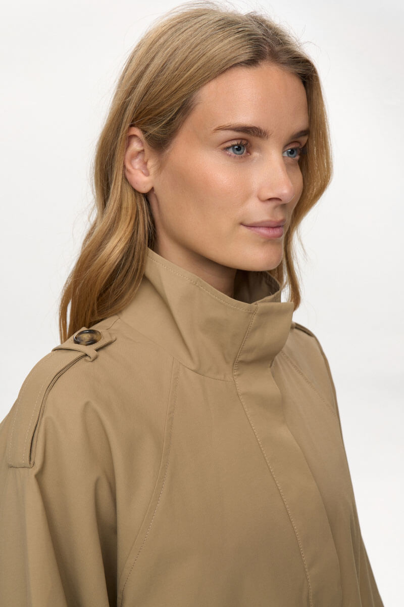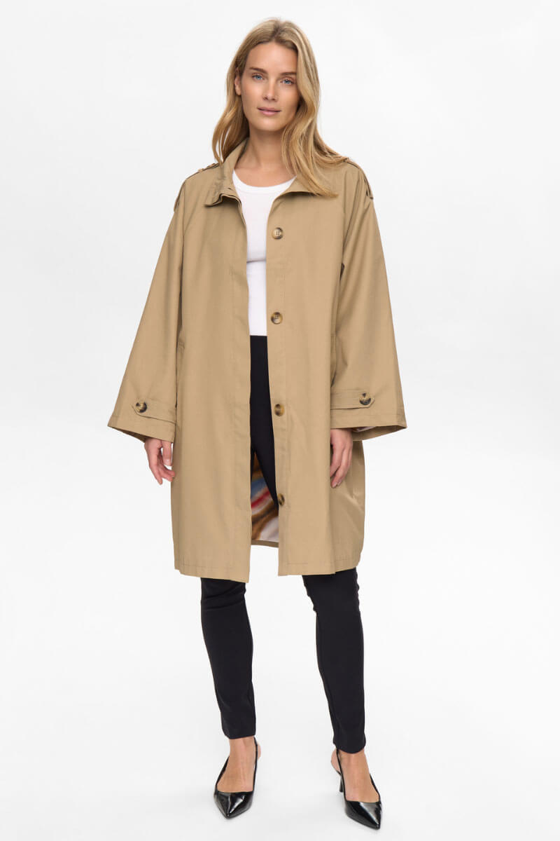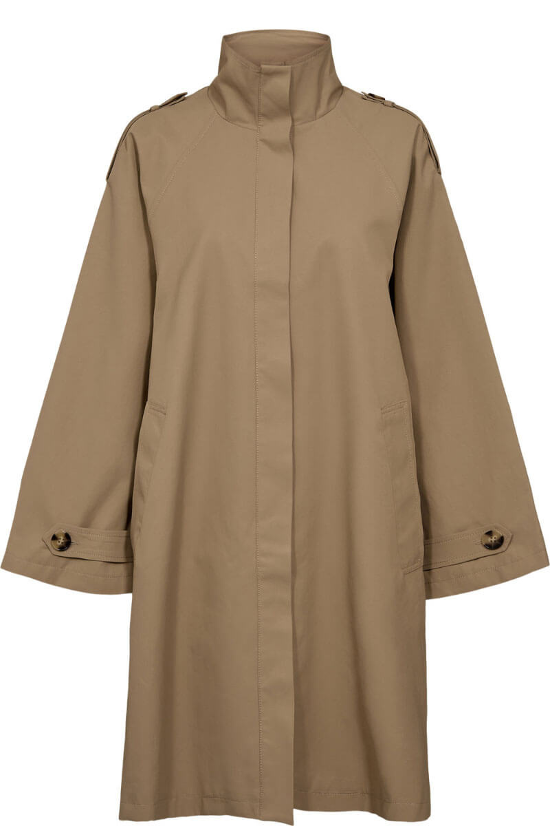 En klassisk trenchcoat som ger en tidlös och elegant känsla till garderoben. Den raka silhuetten och de rena linjerna gör den enkel att bära över både vardags- och jobblooks. Perfekt som ett lätt ytterplagg under vår och höst, lika snygg till jeans som till klänning.