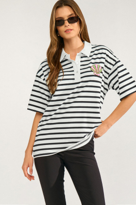 Krage och knappar fram och snyggt loose fit. Är du mellan storlekar gå ner en. Ska vara stor.