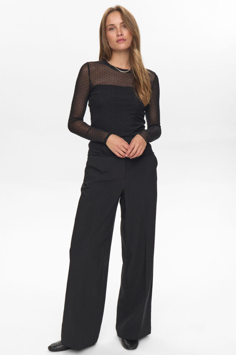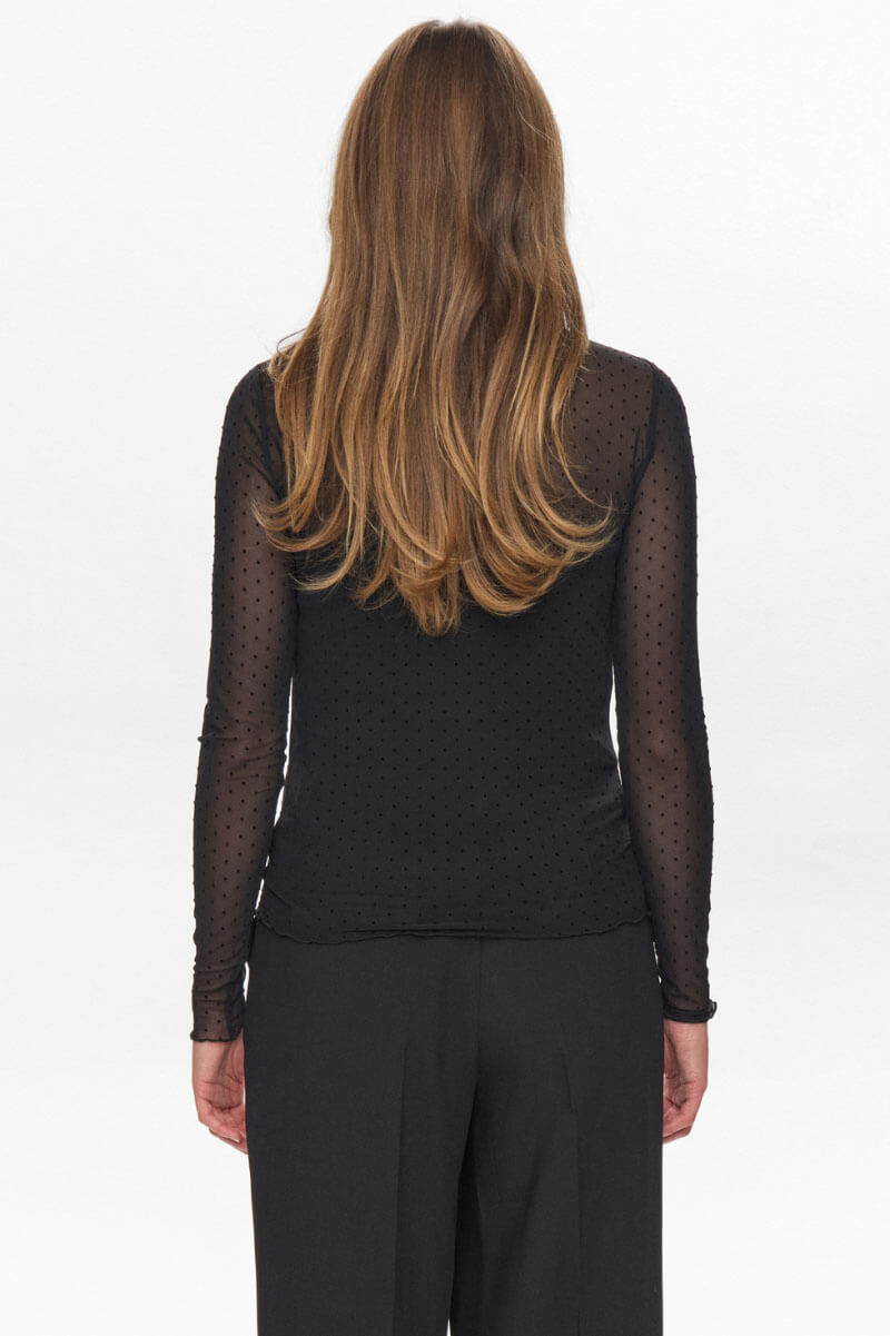 Långärmad top i lätt transparent material med normal passform. Tillverkad i en mjuk och stretchig kvalitet som ger komfort och rörelsefrihet. Inget linne under, för tydligare bild se produktbild.- Normal passform