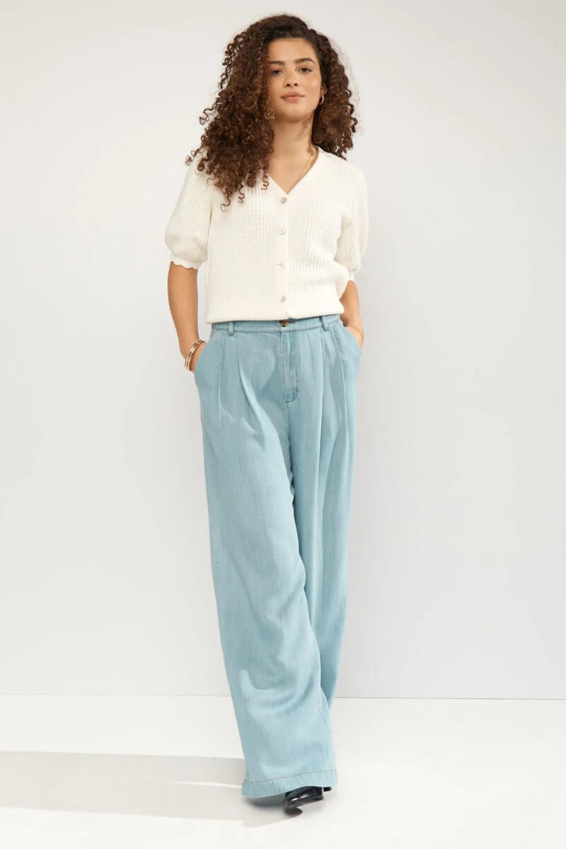 En klassiker, den vita koftan här i en mer feminin modell.En mjuk härlig kofta du har som den är eller utanpå en blus.