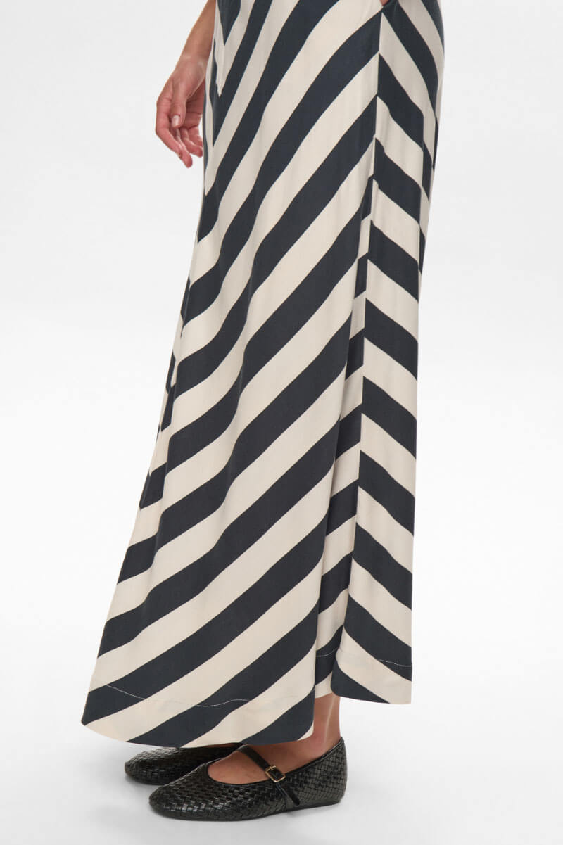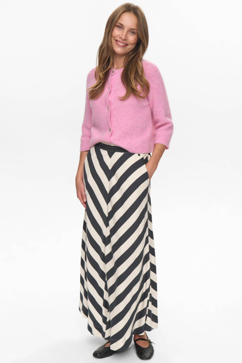 En elegant och luftig kjol som kombinerar modern enkelhet med klassisk charm. Kjolen har vackert fall och en behaglig känsla mot huden och är perfekt för många tillfällen. Stylea exempelvis med stickad tröja till vardags eller skjorta till fest.