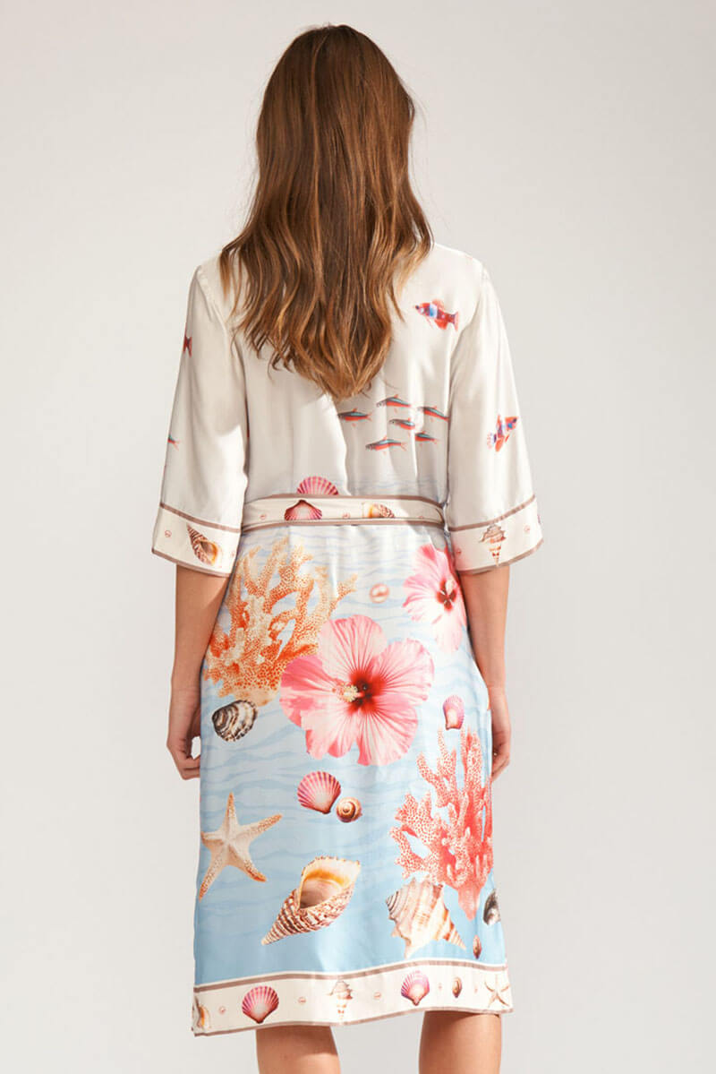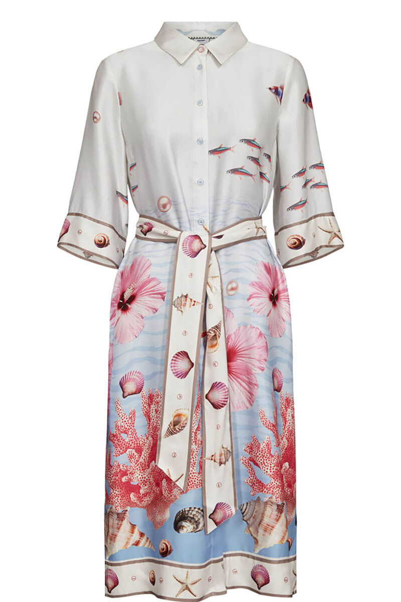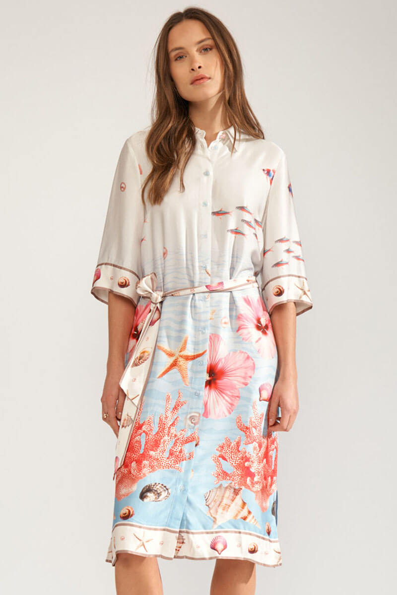 Sommarens klänning från Nümph med fint print.Klänning med en lite längre kort ärm och ett skärp du knyter i midjan eller bara löst bak. Mönstret är Nümphs egna. Lös härlig passform.