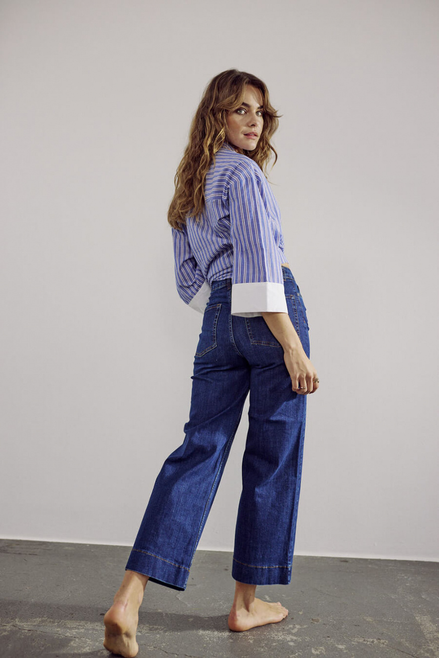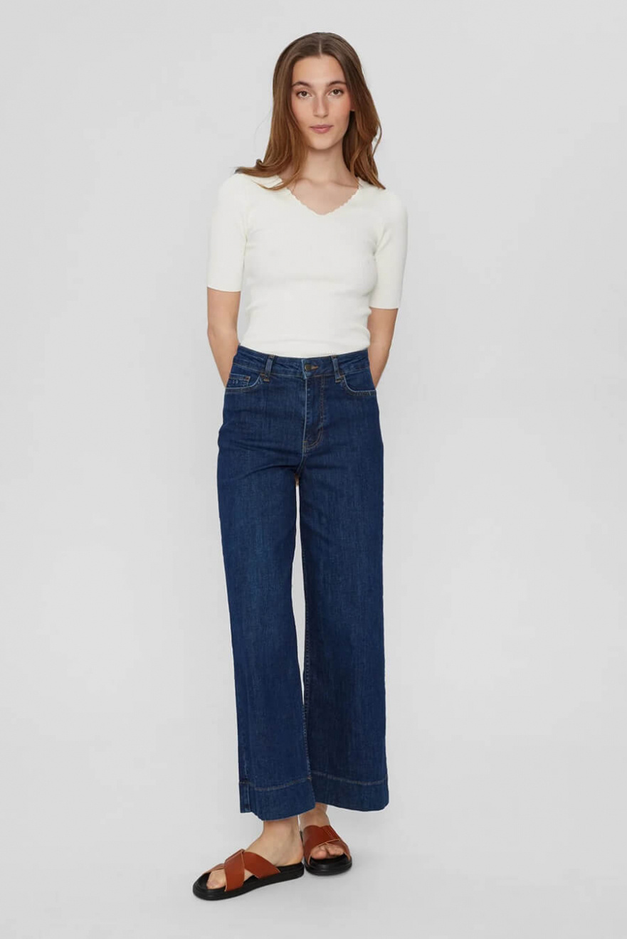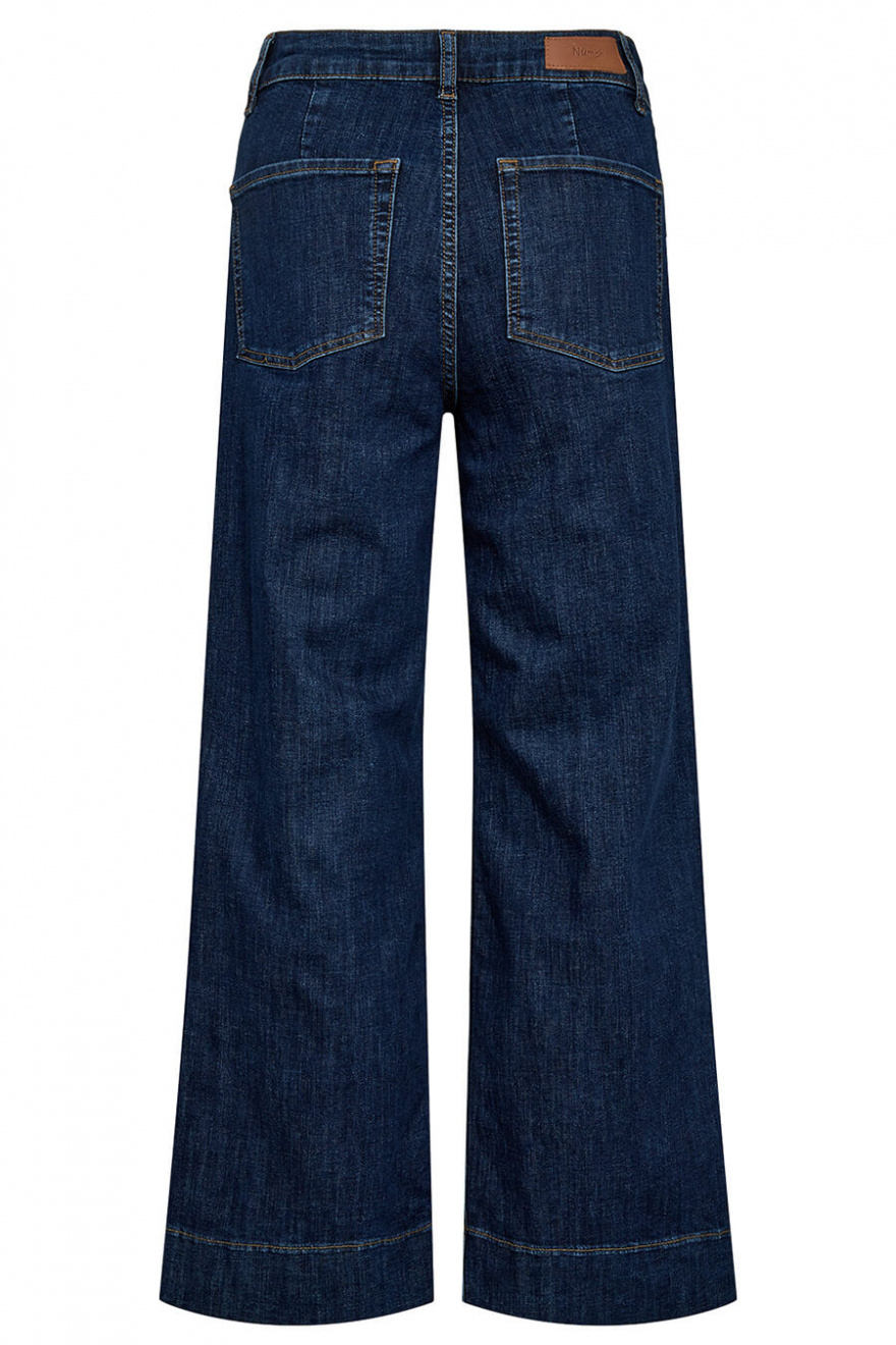 Dessa blåa jeans med vida ben och hög midja är både trendiga och bekväma. Den ankelkorta längden skapar en modern siluett som passar perfekt med sneakers eller klackar.Stretchiga jeans i en bomullsblandning med vida ben, hög midja och ankelkorta ben från Nümph.