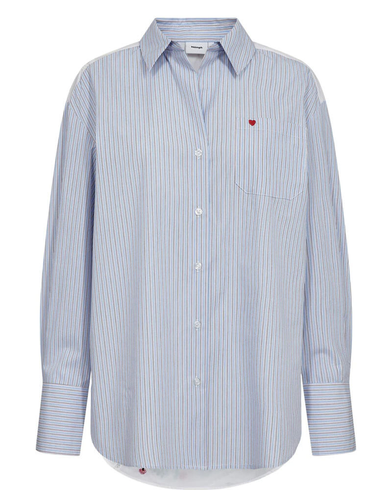 Skjortan med fina detaljer.Skjorta från danska Nümphmed det lilla extra i ljusblå rand med bakstycke i vitt med broderier. En snygg cool skjorta du kombinerar med jeansen och en snygg sneakers.