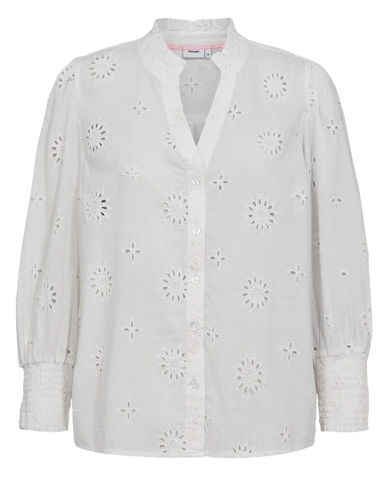 En feminin blus från danska Nümph i mjuk bomull med vackra hålsömsdetaljer.