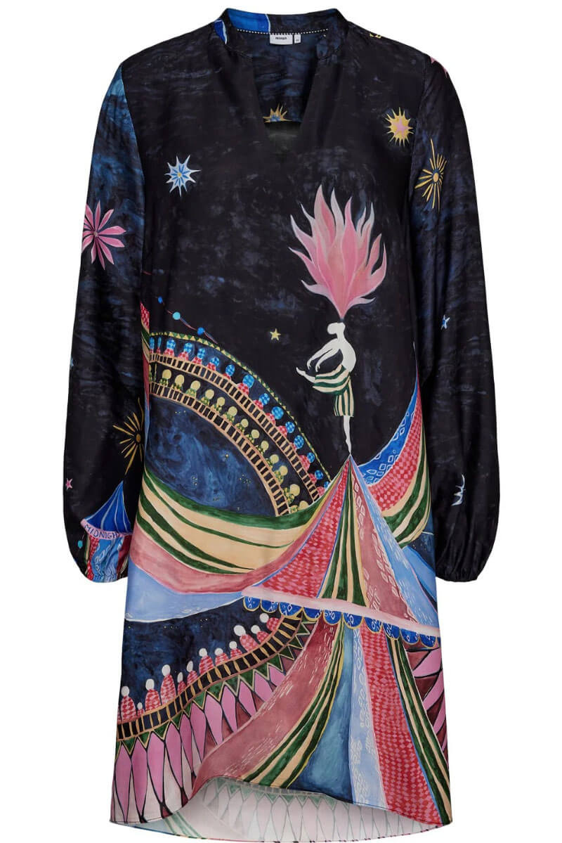 En lekfull men elegant kortklänning med lätt struktur och mjukt fall. Perfekt för både vardag och festliga tillfällen. Tillverkad i en mjuk viskosblandning med hållbart framställd, ger en behaglig känsla mot huden.