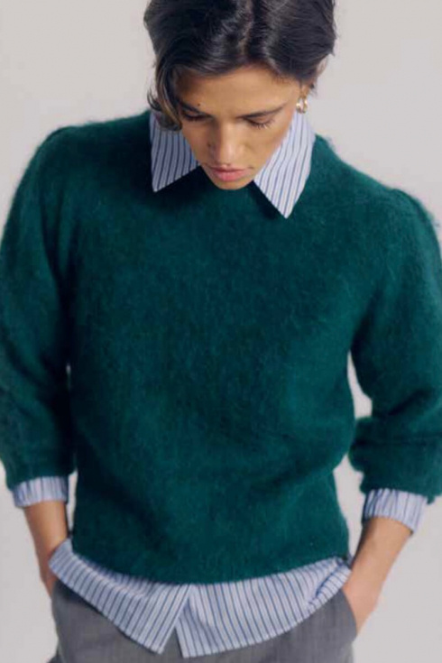 Stickad tröja som kombinerar mjuk komfort med modern elegans. Den borstade ytan ger en lyxig känsla och en avslappnat stilren look, perfekt både till vardags och kontor.