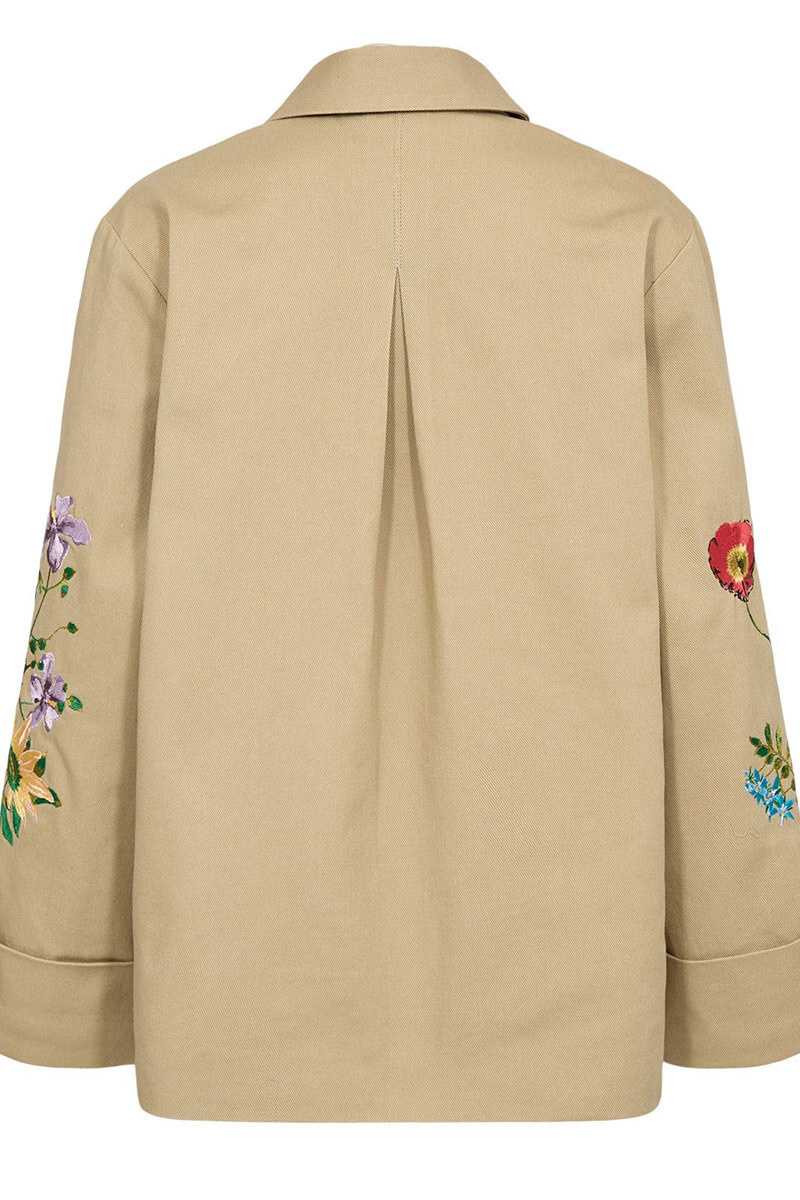 En fantastisk statement-jacka som verkligen sticker ut med sina vackra, broderade blommor. Med sin moderna, rymliga silhuett är den lika snygg över en enkel klänning som till ett par jeans.