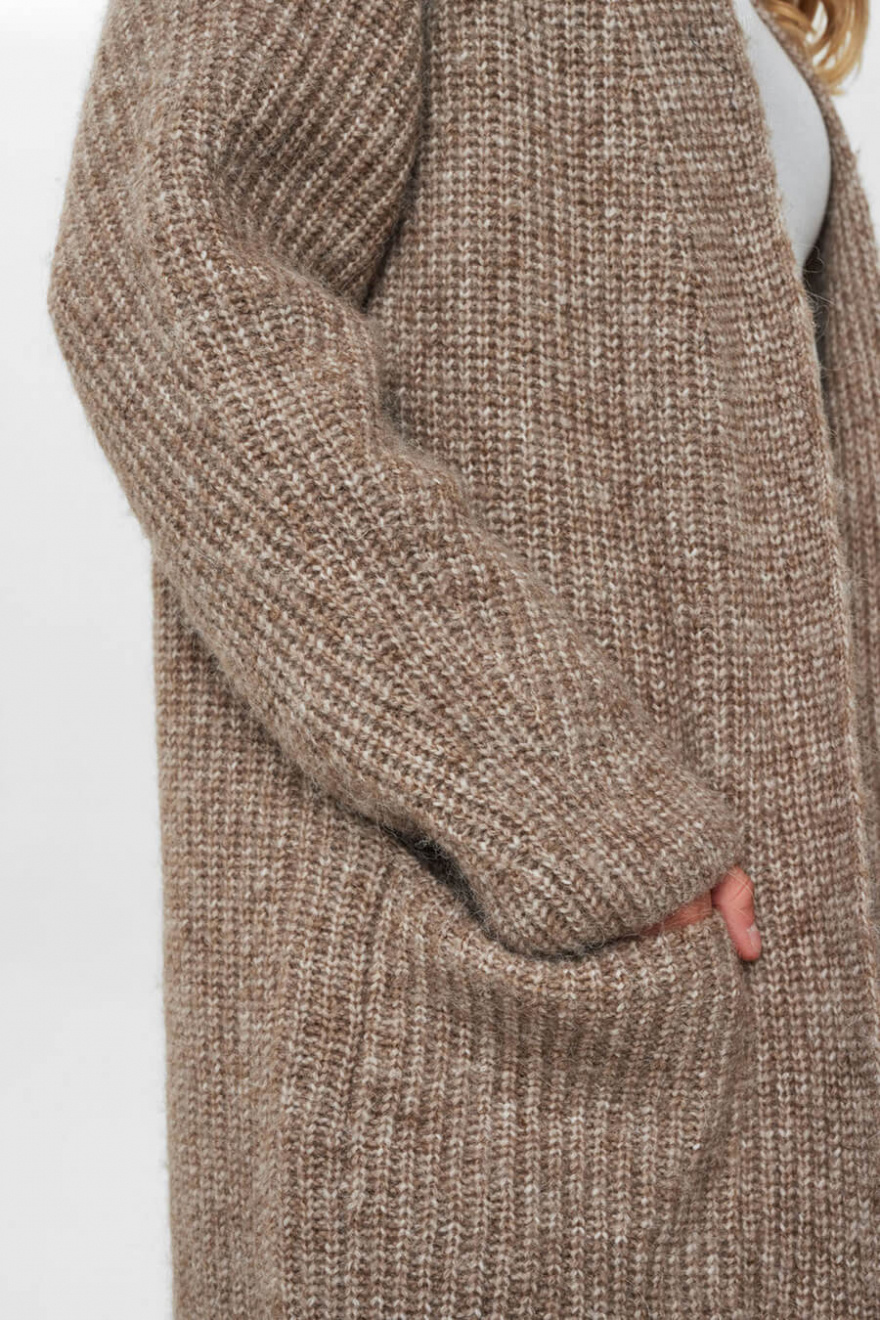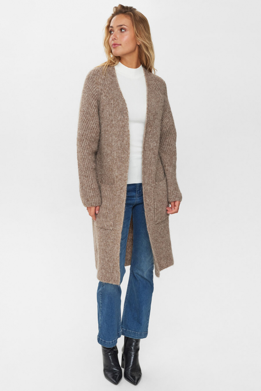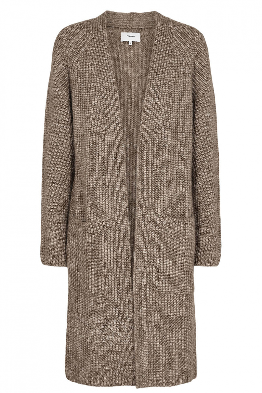 Denna mysiga, långärmade kofta är perfekt för lager-på-lager under kyligare dagar. Den ribbstickade designen ger både struktur och komfort, medan fickorna tillför funktionalitet. Ett mångsidigt plagg som smidigt kombineras med både jeans och klänningar!Stickad mjuk kofta i en öppen modell med fickor fram, ledig passform och raglanärmar från Nümph.