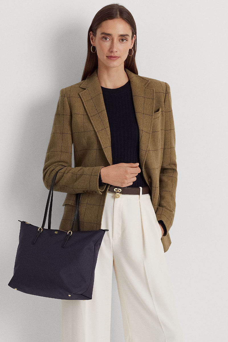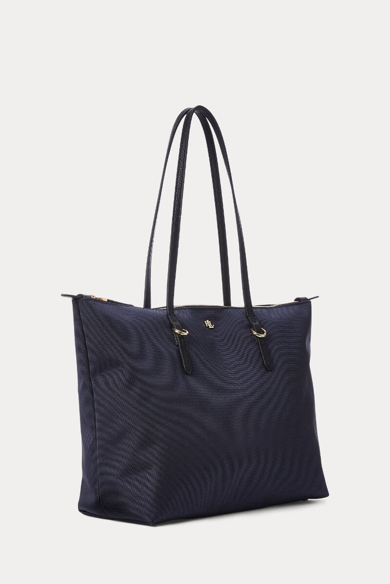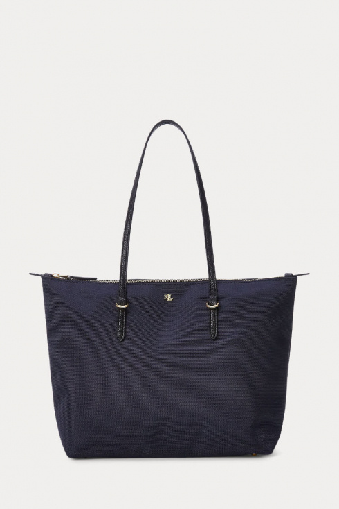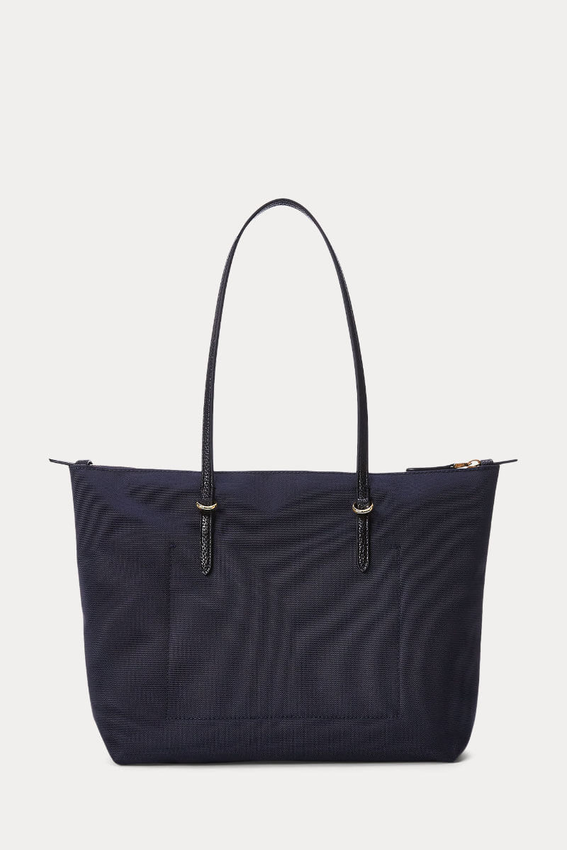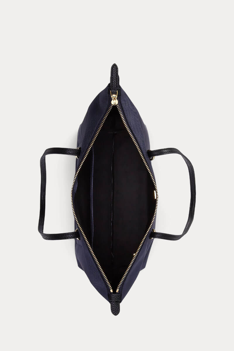 Den mörkblå handväskan i nylon med svarta detaljer och guldiga accenter kombinerar smart funktion med stilren design. Lätt att bära, generös i storlek och alltid aktuell.Medium tote bag i nylon med dubbla handtag, stängs med dragkedja upptill, logga fram och en innerficka med dragkedja från Lauren Ralph Lauren.