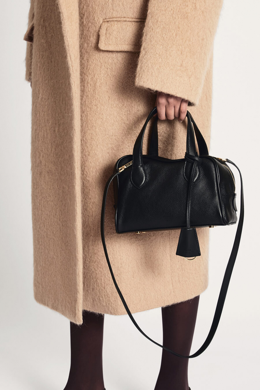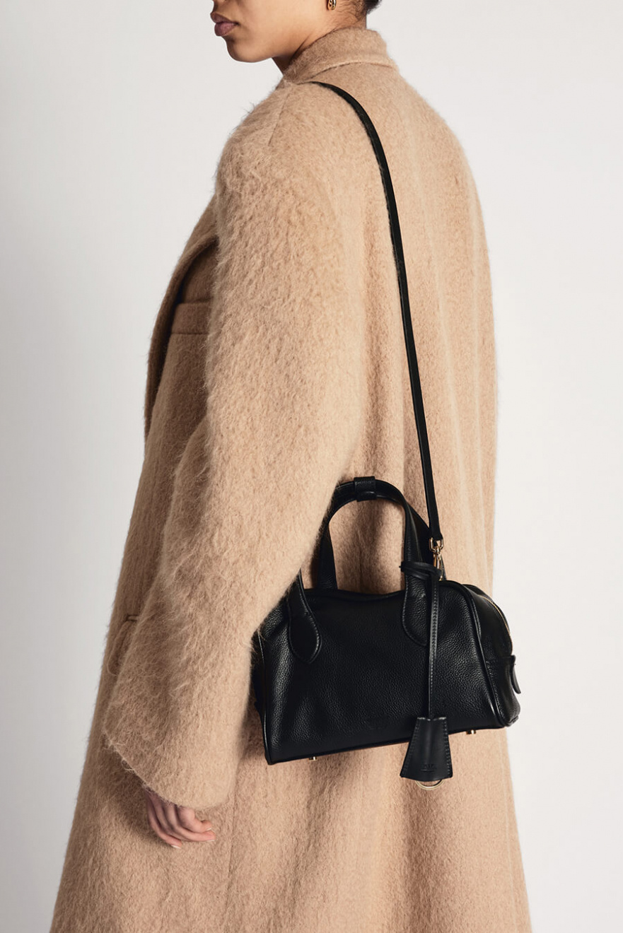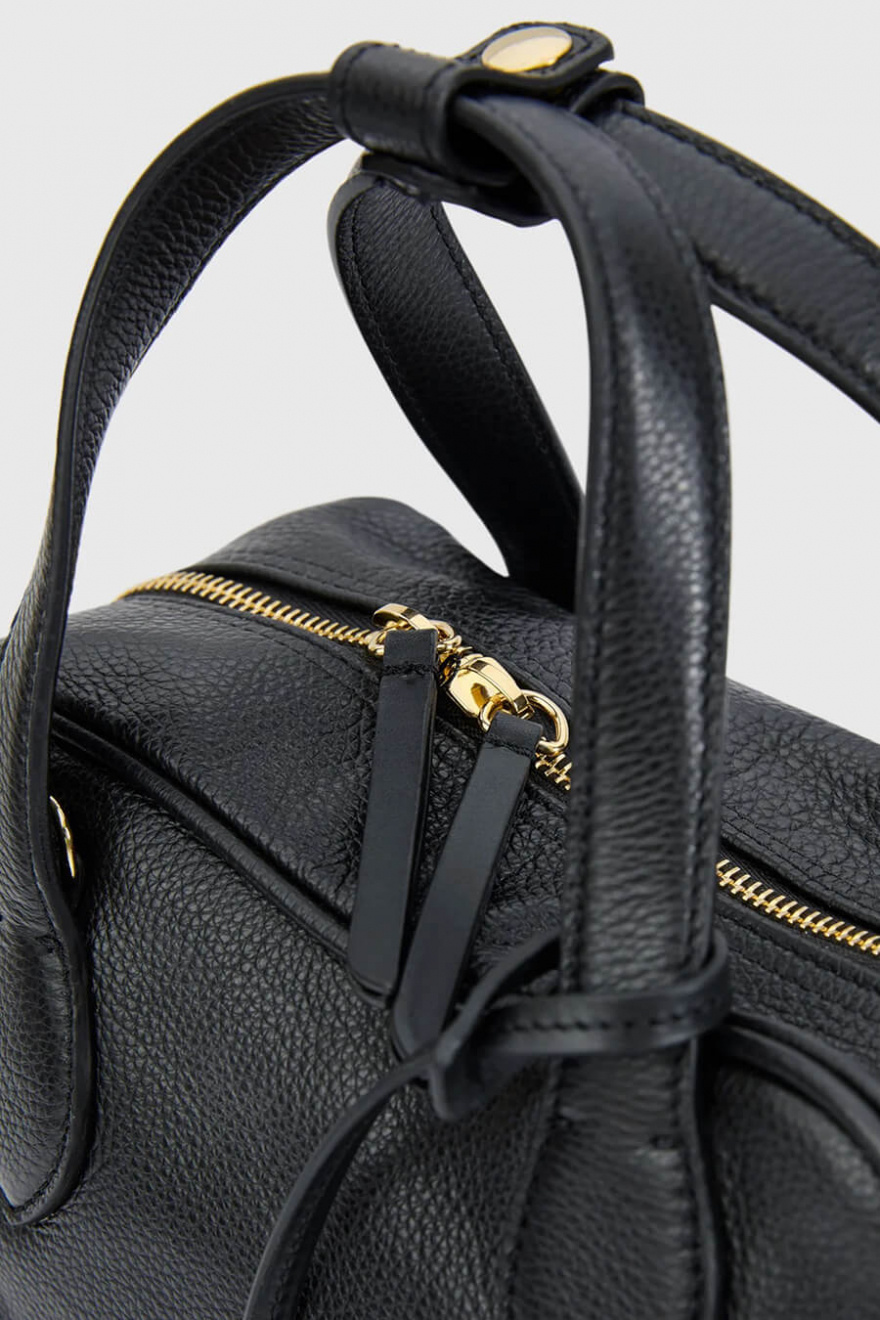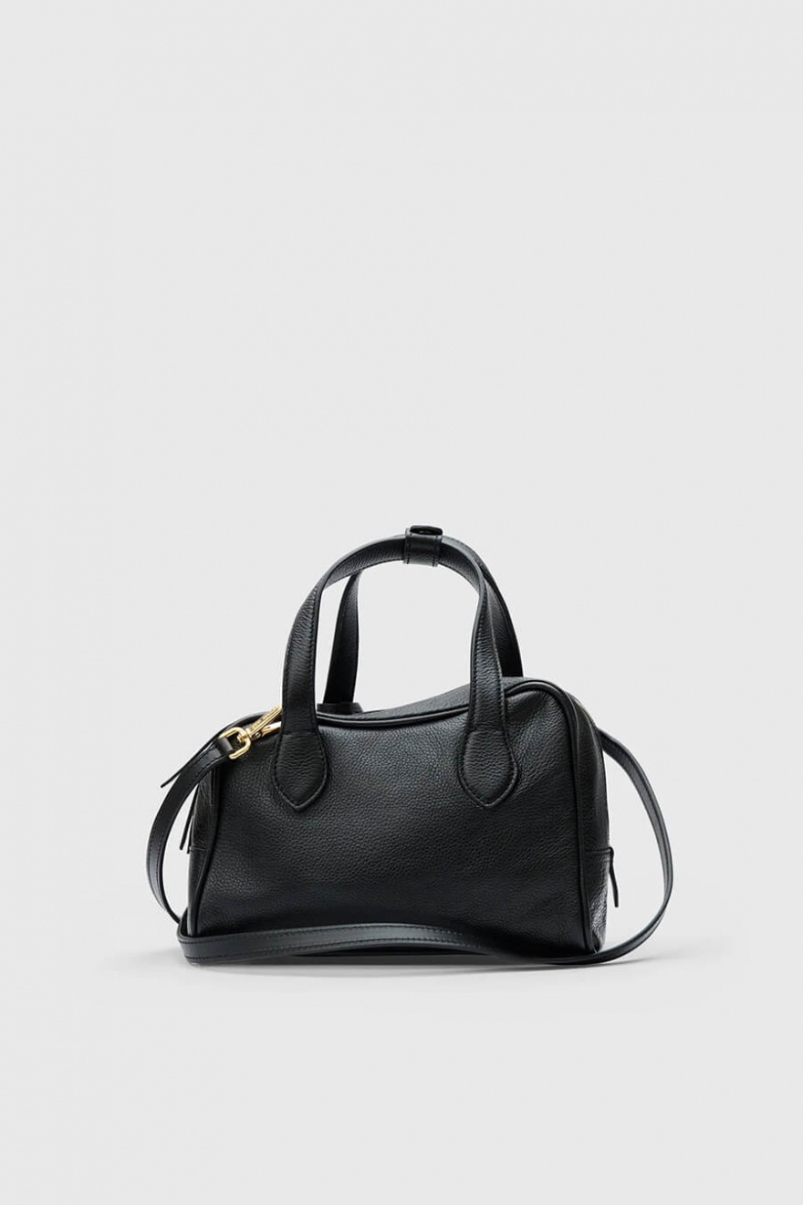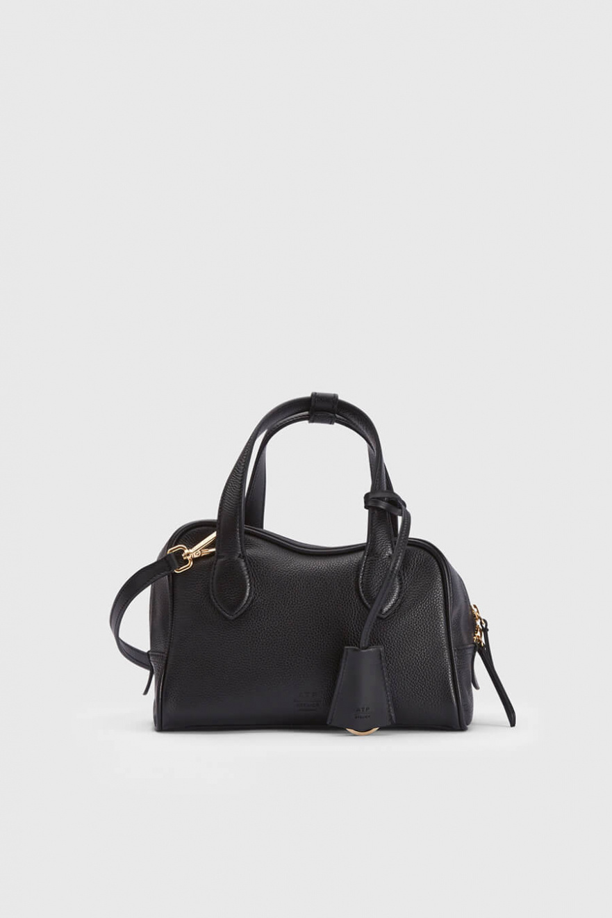Denna sofistikerade handväska i grynigt läder kombinerar tidlös elegans med praktisk funktion. Med sina subtila gulddetaljer och klassiska design blir den en mångsidig väska som passar både vardag och fest. En tidlös accessoar!Handväska i mjukt läder med avtagbar axelrem, dubbla handtag, liten nyckelring och stängs med en dragkedja upptill från ATP Atelier.