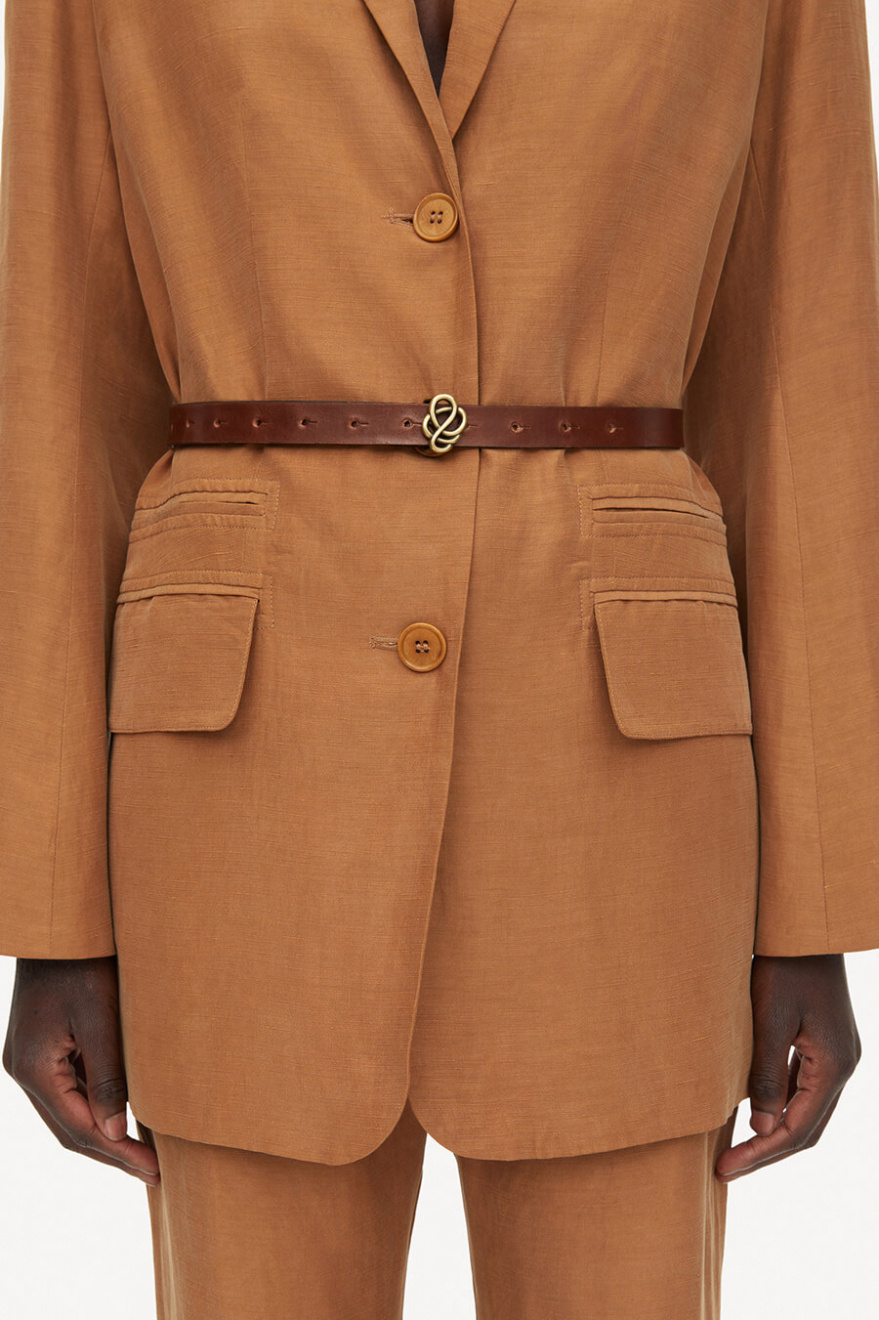 Tillverkat av slätt, smidigt läder för att sitta bekvämt runt din midja. Dra den genom öglorna på dina favoritbyxor eller runt midjan på en klänning.