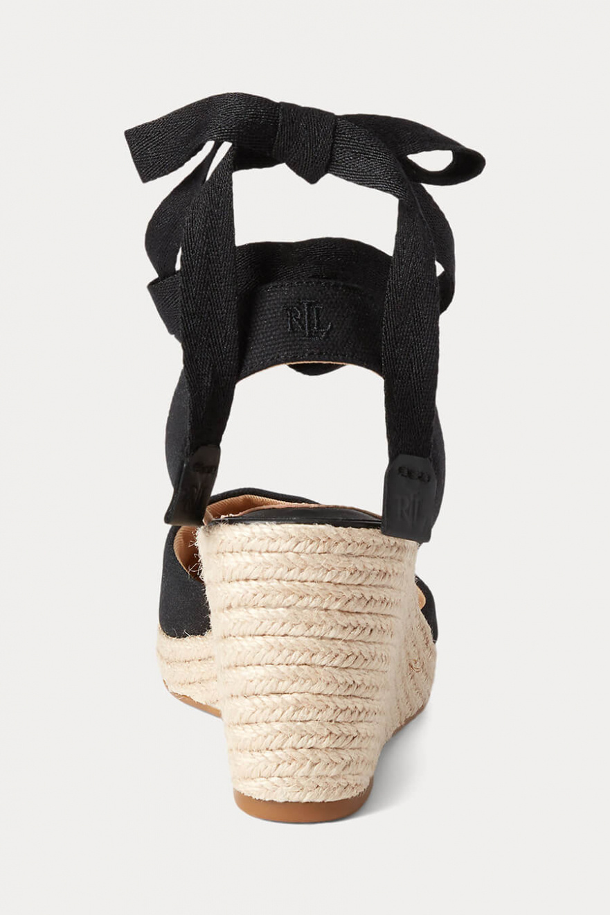 Laurens ikoniska espadrille, en klassiker som är gjord av slitstark canvas och har en feminin snörningsdesign med signaturpräglade läderflikar.Detaljerad med en "LRL"-broderad logotyp på bakremmen, den är förstärkt med en vadderade fotbädd för maximal komfort vid varje steg.