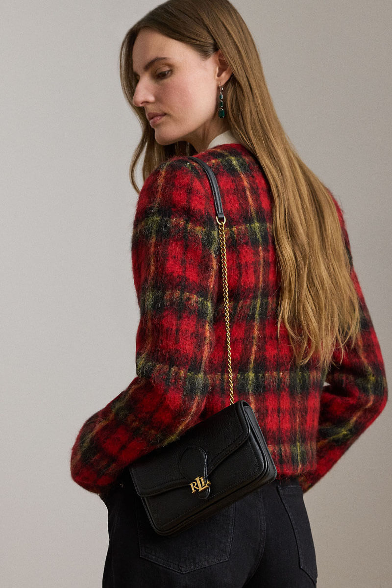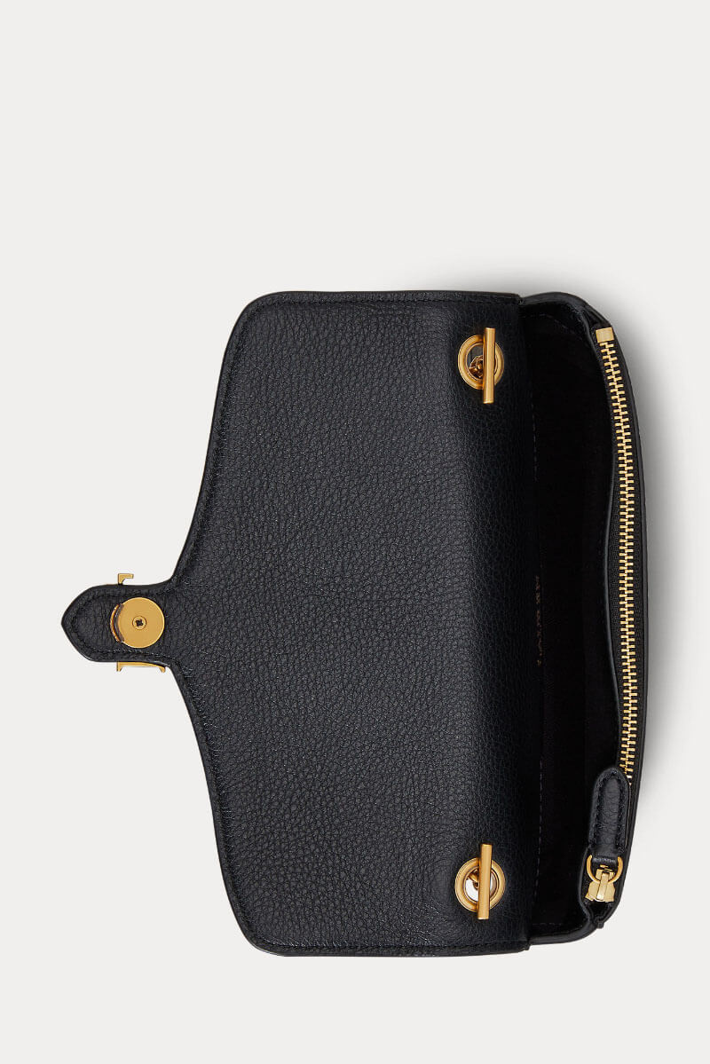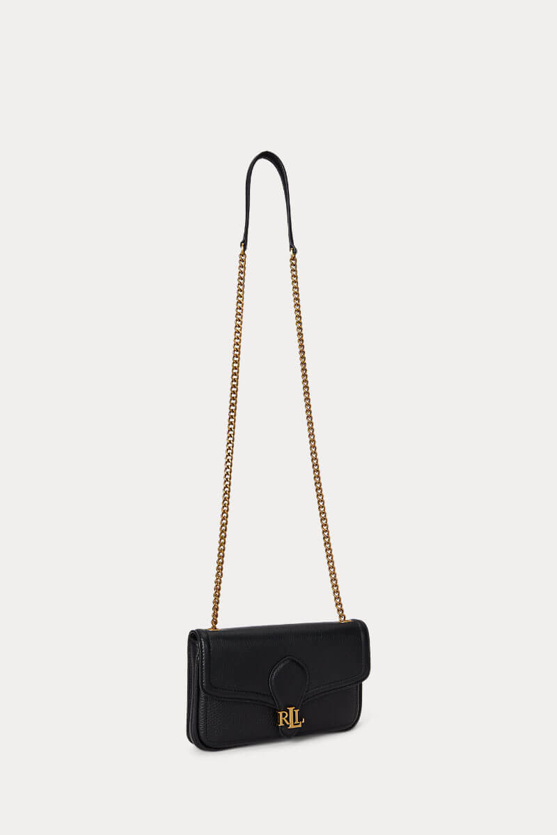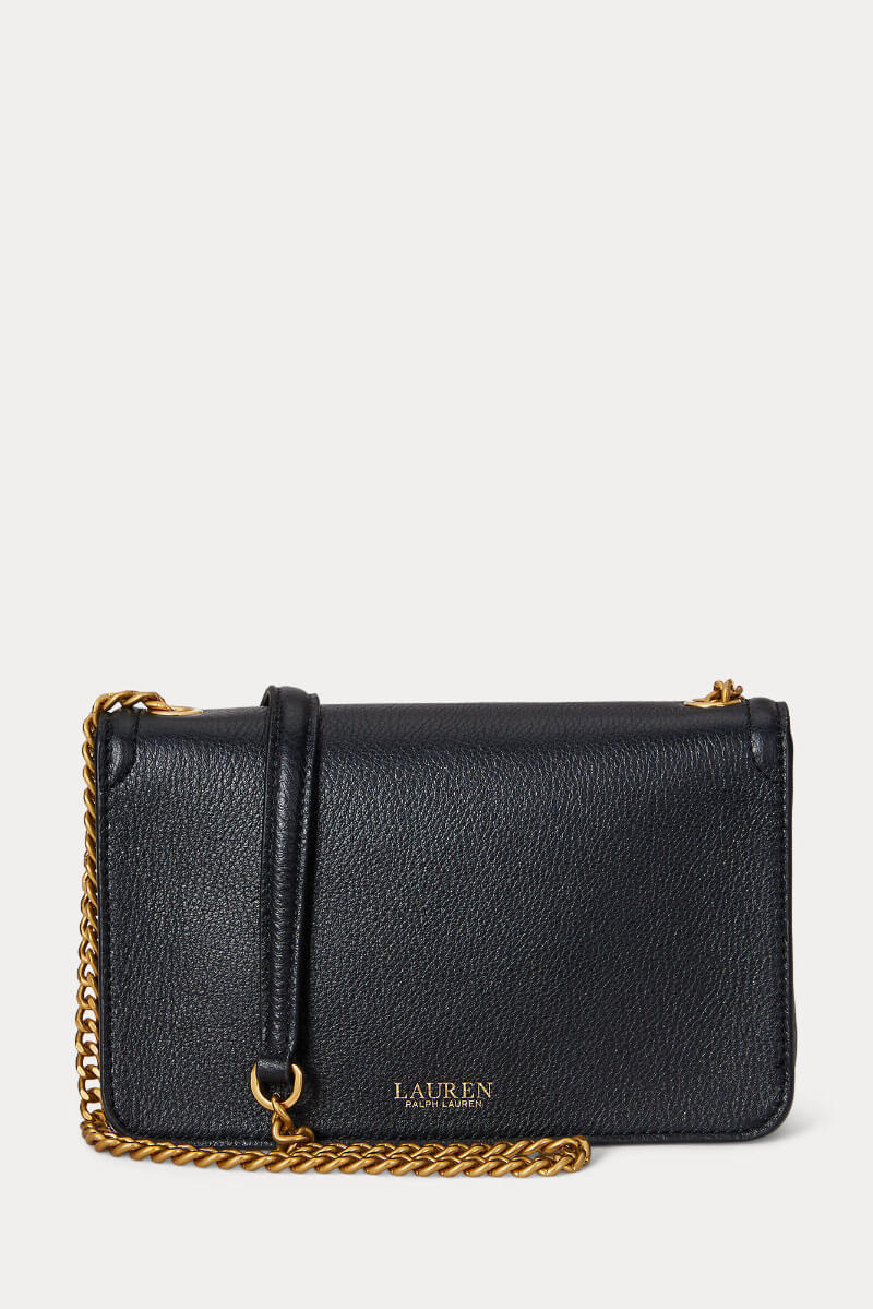 Svart läderväska med kedjerem och gyllene detaljer – en sofistikerad accent som lyfter varje outfit. Bär den crossbody till stickad klänning för dagtid, eller över axeln till kostym och klackar för en elegant kvällslook med diskret lyx.Liten handväska i mjukt läder med avtagbar axelrem, innerficka med dragkedja och stängs med ett lock från Lauren Ralph Lauren.