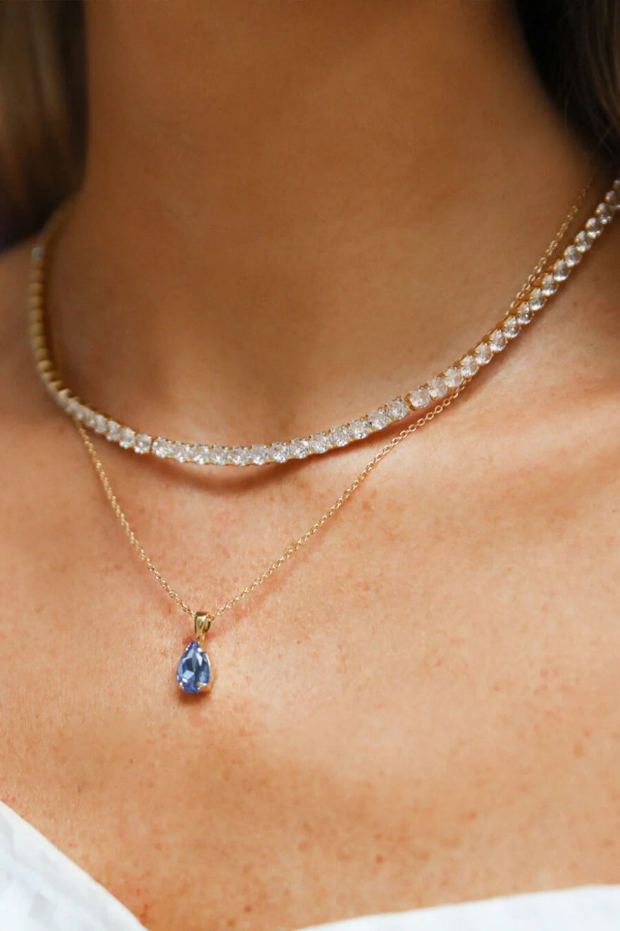 Petite Drop Necklace, Gold & Lapis