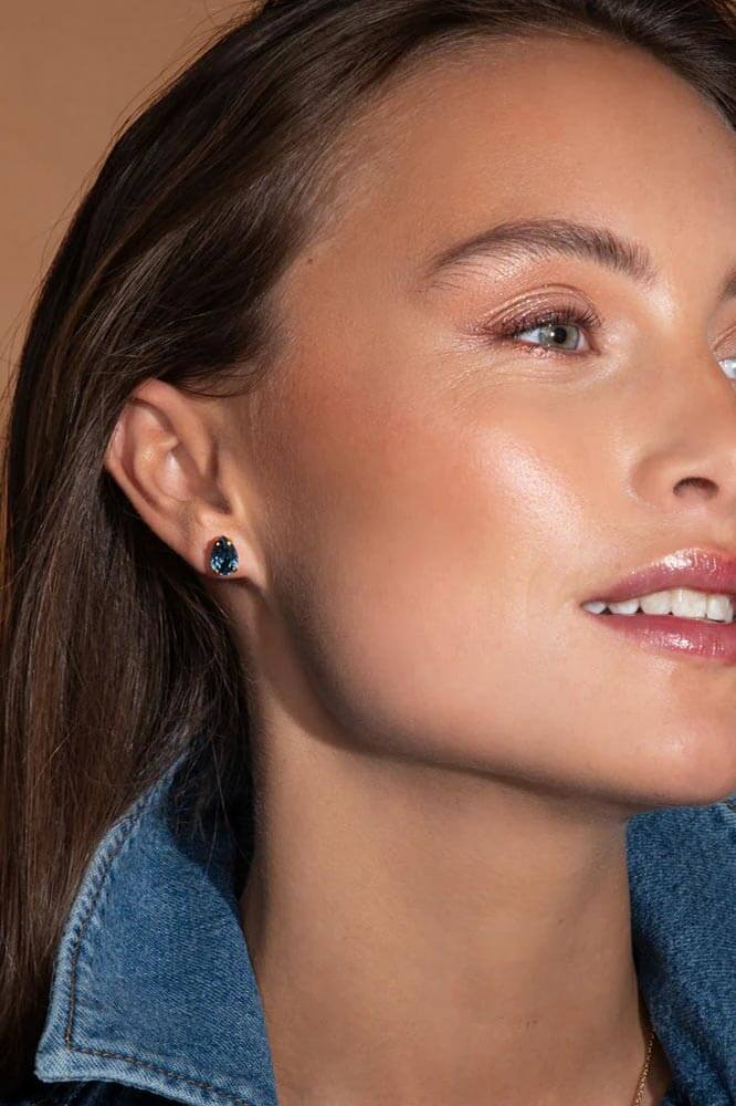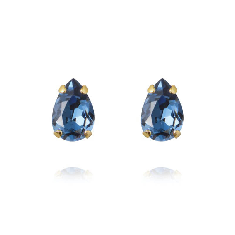 Petite Drop Stud Earrings, Gold & Denim Blue
