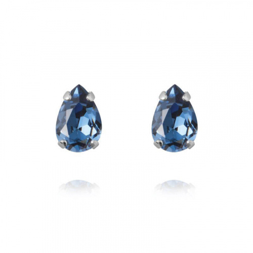 Petite Drop Stud Earrings, Rhodium & Denim Blue