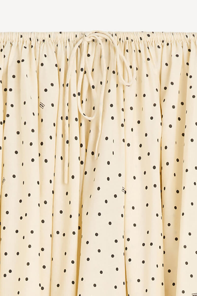 Tillverkad i krispig och andningsbar ekologisk bomull, har den voluminösa A-linjen en bekväm resårmidja.