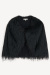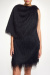 Fransad svart cape i dramatisk textur – perfekt för festlig layering över sidenklänning eller med vida byxor för en skulptural siluett. Statementplagg som rör sig med dig. Modern minimalism, med maximal effekt.Cape i fransar med drapering fram och är fodrad från By Malene Birger.