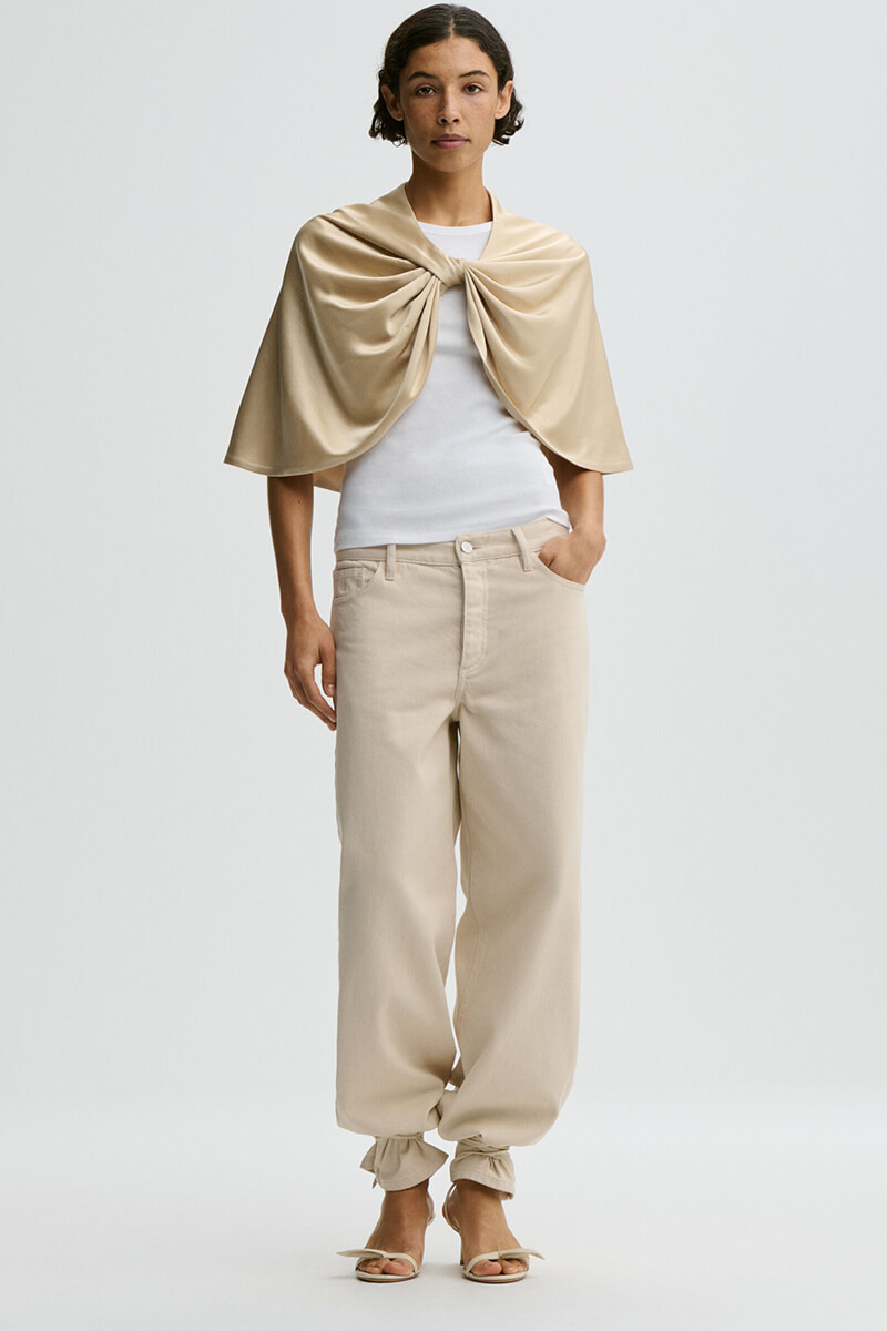 En sofistikerad cape som är det perfekta lagret för kyligare kvällar. Med sin minimalistiska design och eleganta drapering lyfter den omedelbart din outfit, oavsett om den bärs över en festklänning eller som en stilsäker detalj till vardags. Ett mångsidigt plagg som ger en lyxig och välklädd finish.