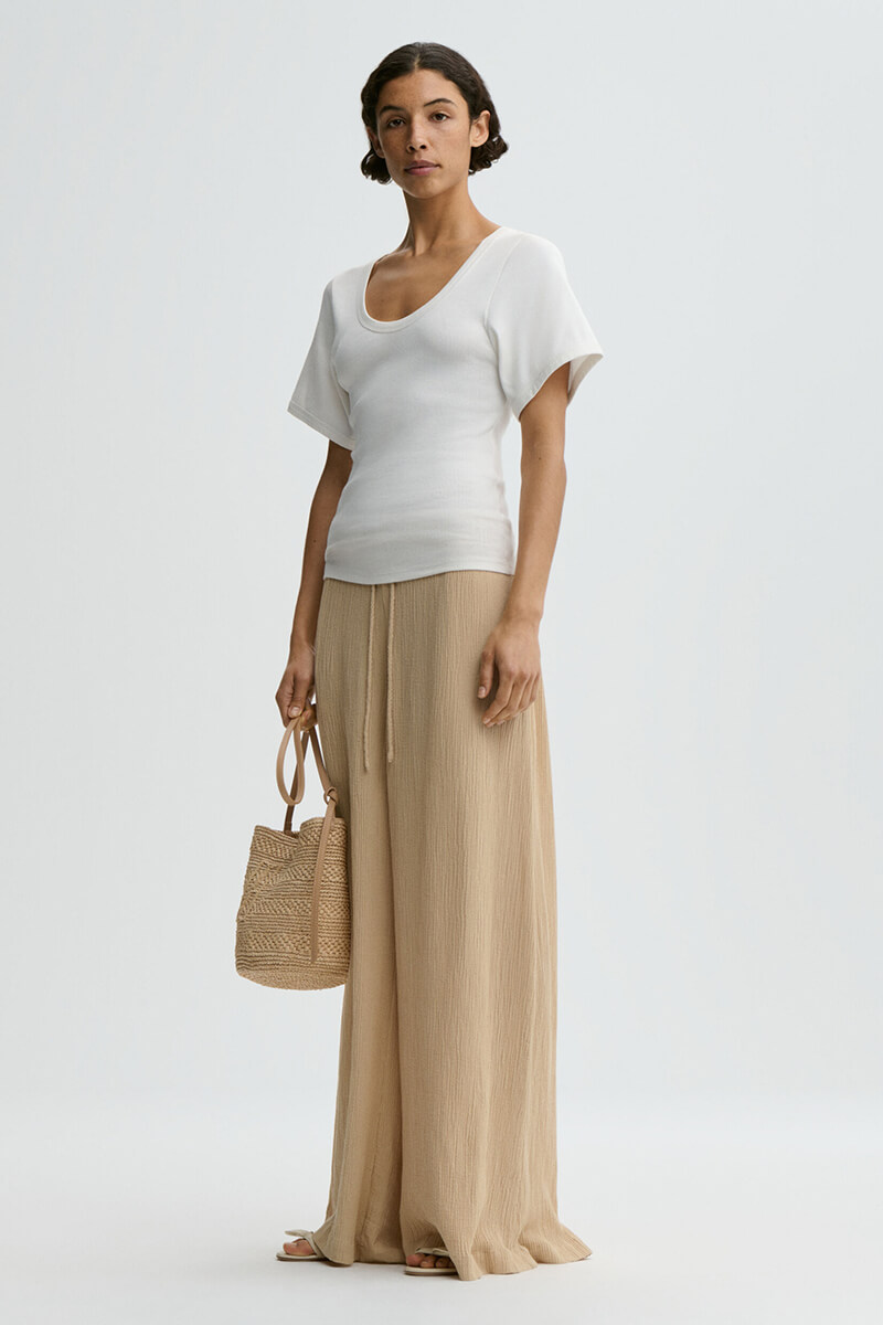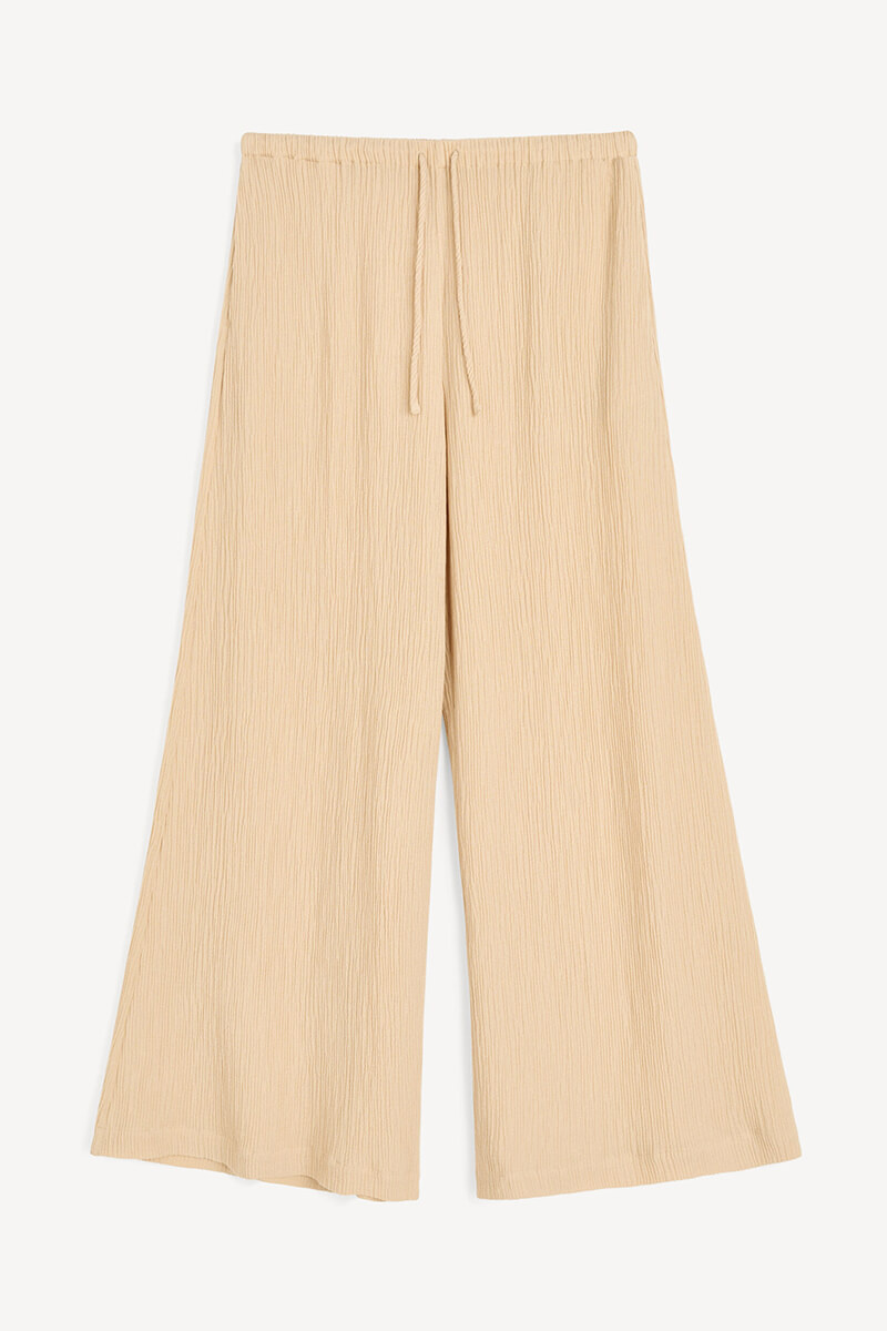 Med sin avslappnade passform, höga elastiska midja och vida ben skapar de en smickrande och modern siluett som är lika bekväm som elegant.